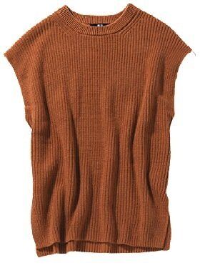 ざっくり編まれた厚みのあるニットは、ナチュラルさん向き。フレンチスリーブで二の腕の太さをカバーし、濃いめのブラウンで、引き締め!/ユニクロ
