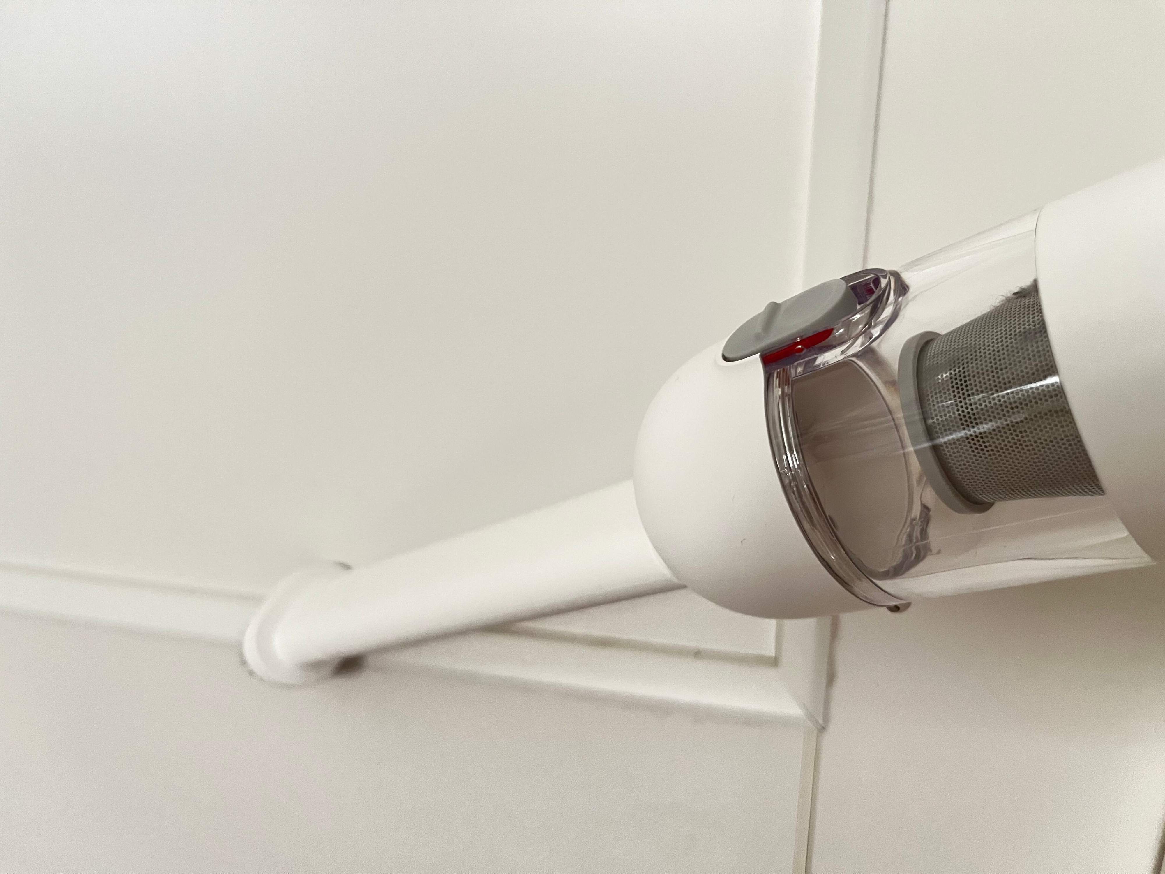 本体とノズルで長さが出て、壁の下部分にある「巾木(はばき)」や階段の隅も、少しかがむだけで掃除できました。