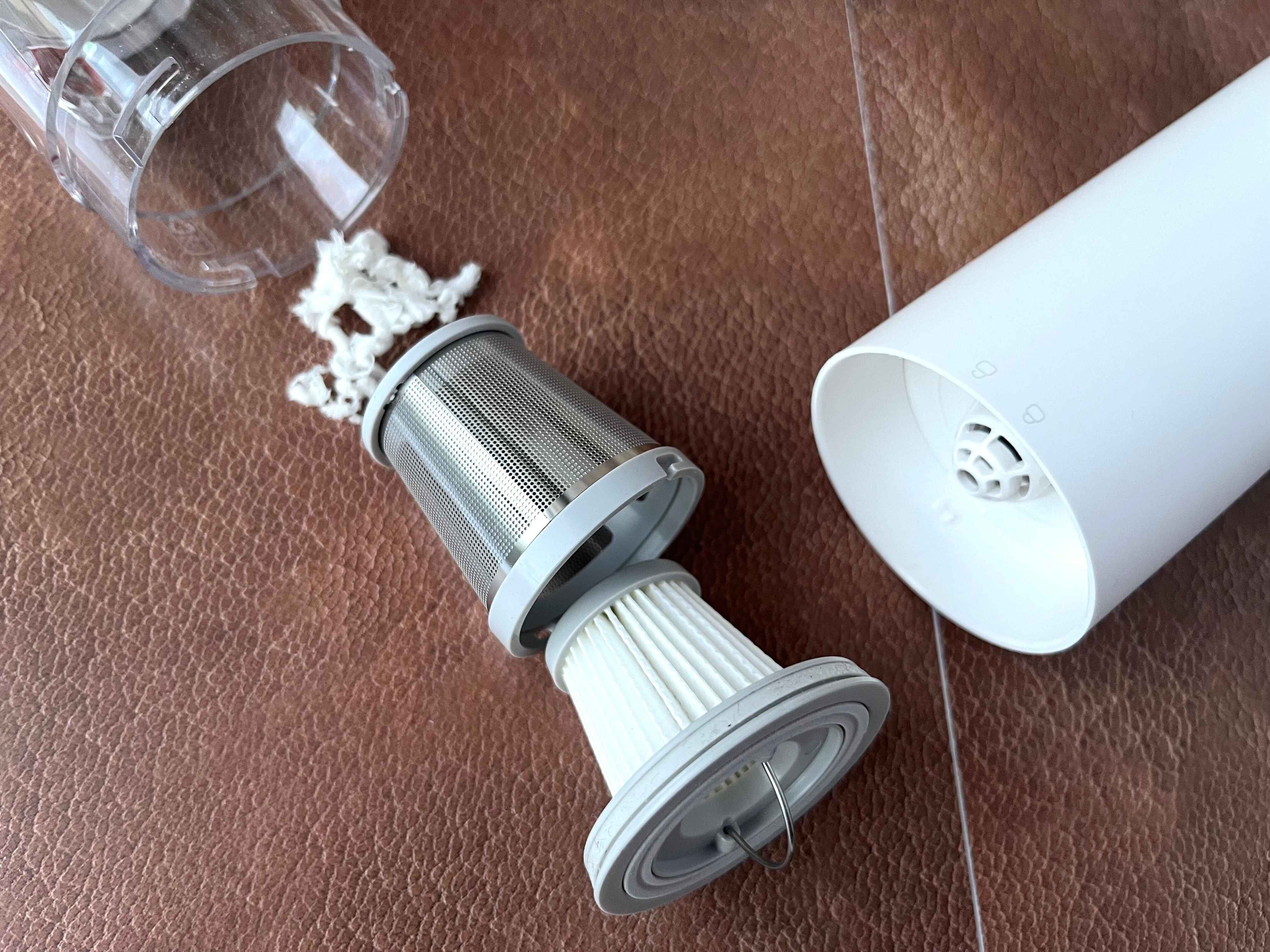 本体上部のダストカップは、ロックを外すとこのように開きます。