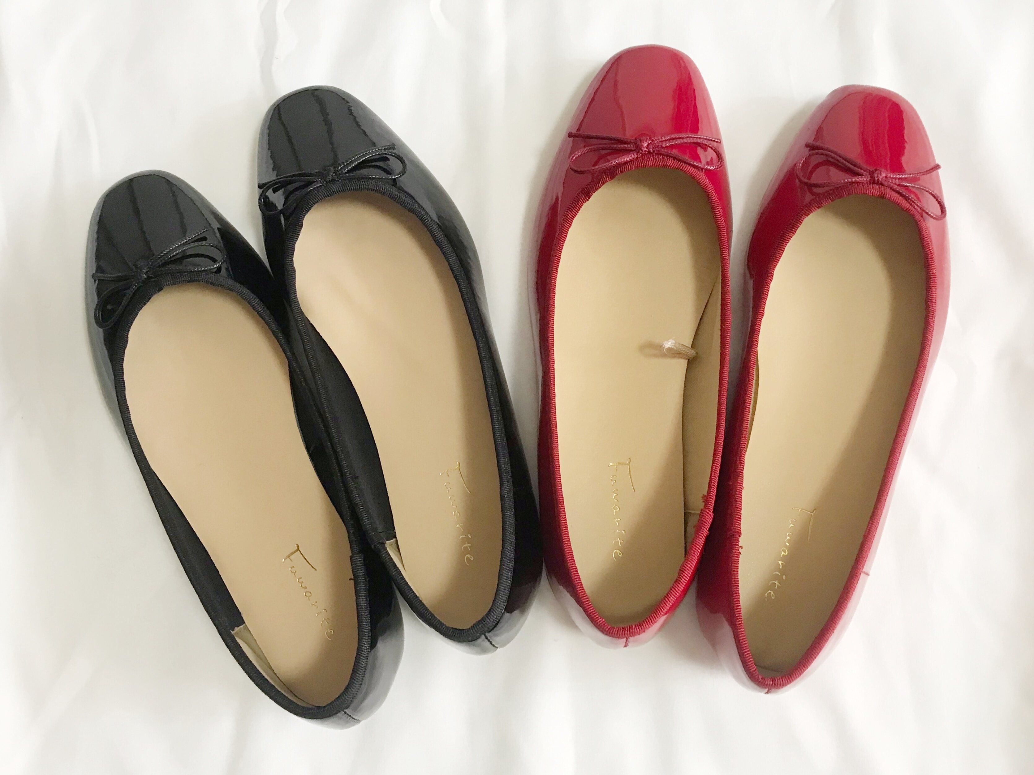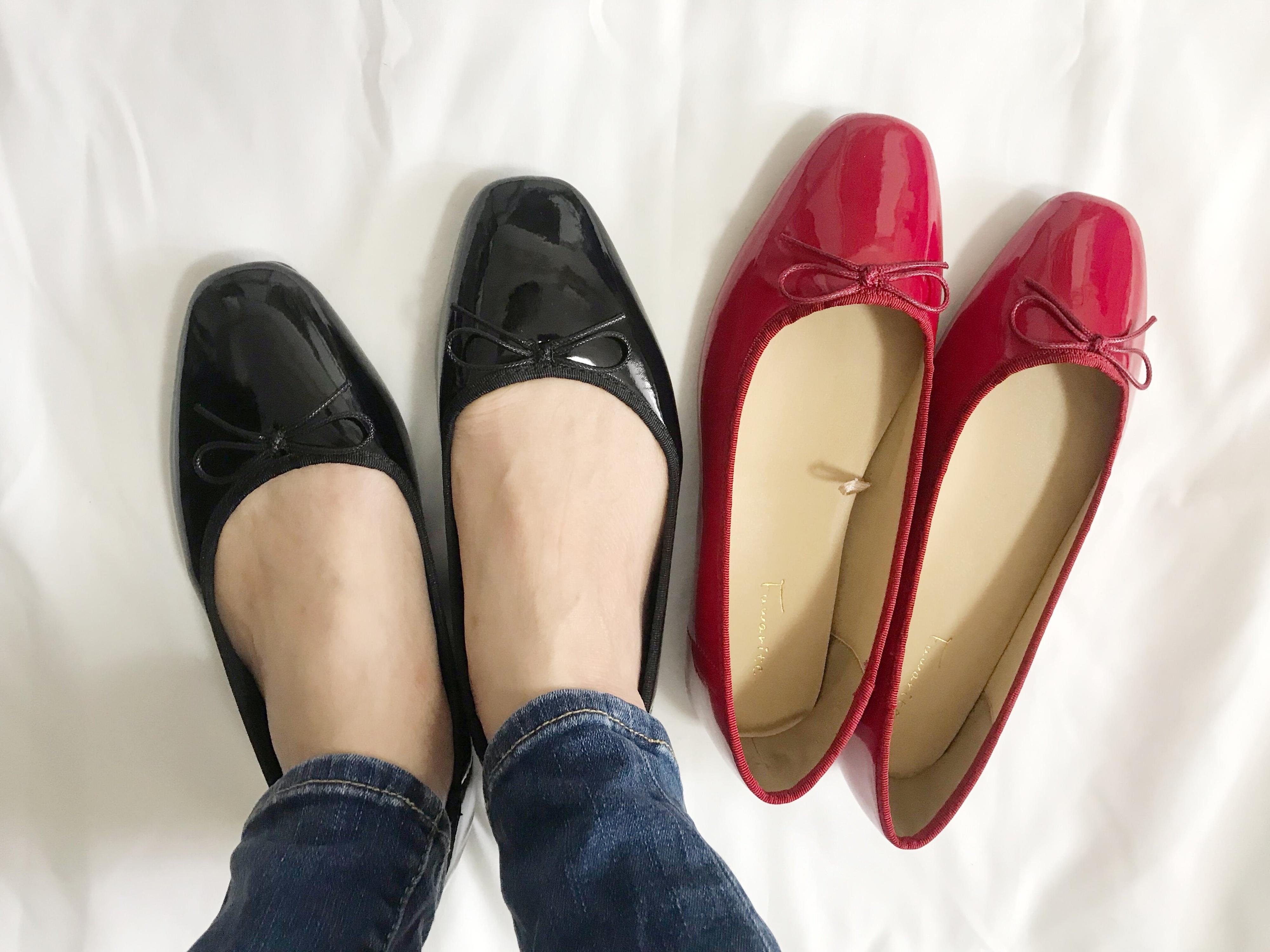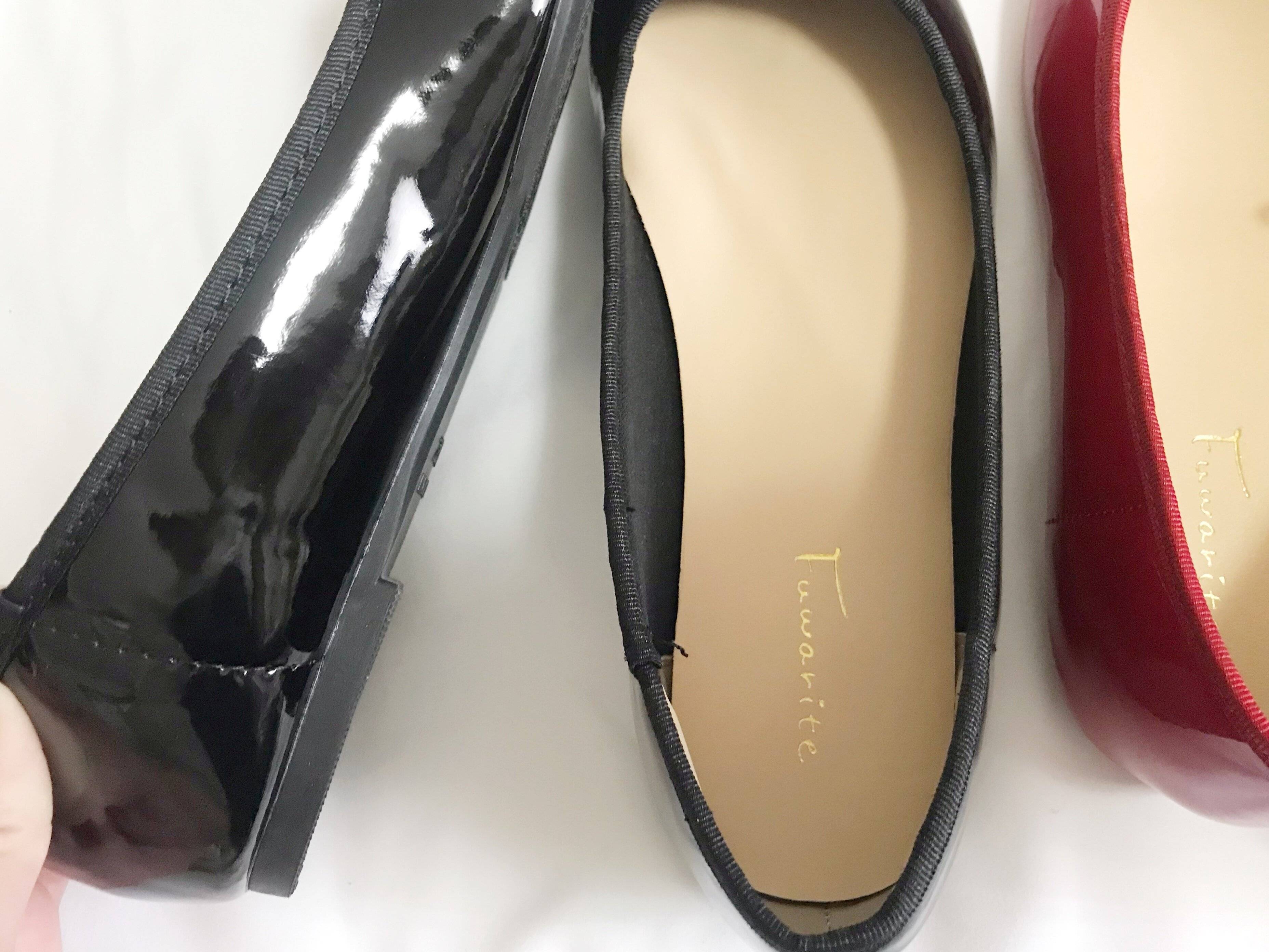 今回筆者は撥水加工がされているエナメル調のブラックとレッドの2足を購入しました。