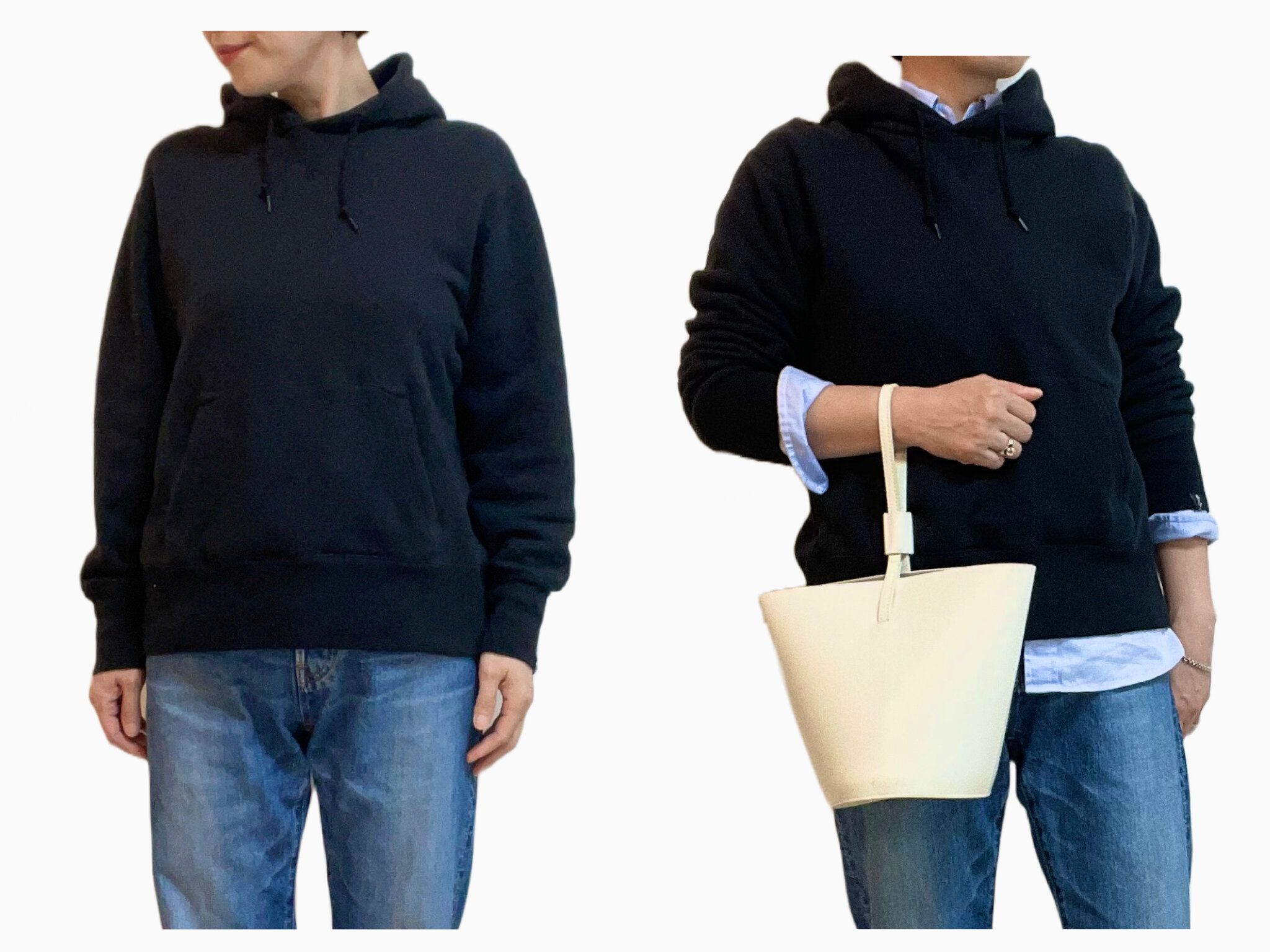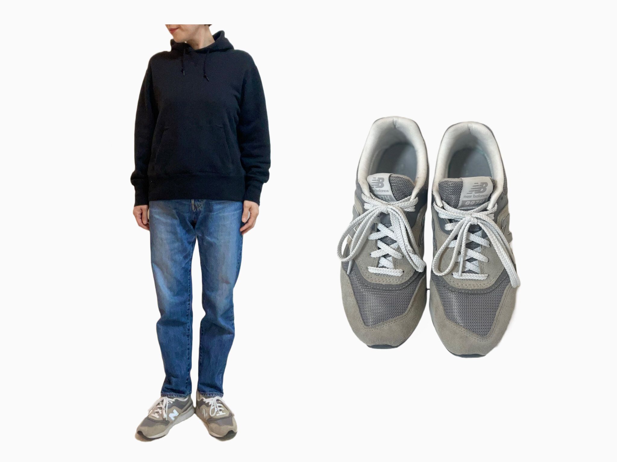 スウェット+デニム+スニーカーの時はまるでメンズスタイル。