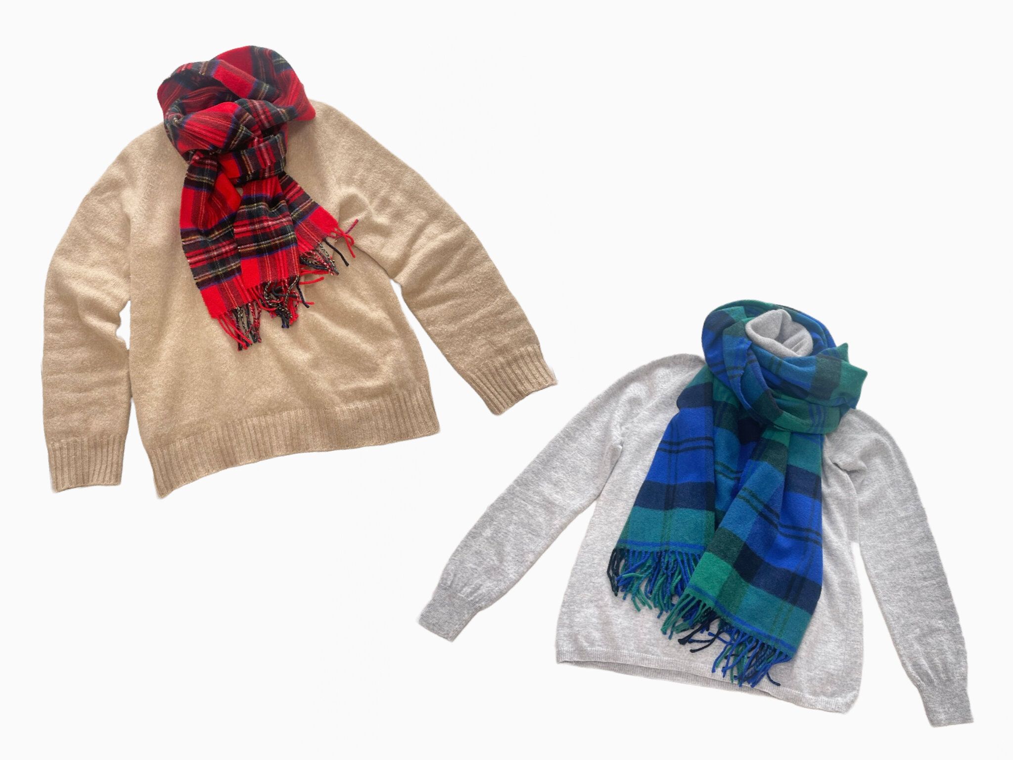 ●赤いチェックストールには?