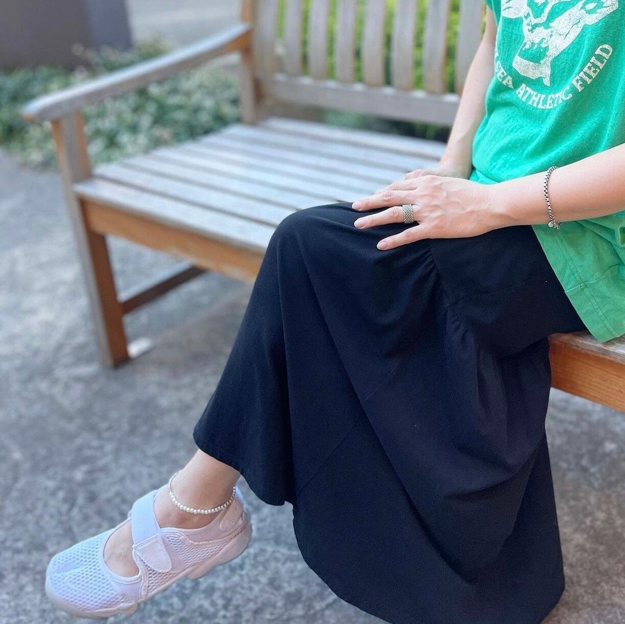 パールのアンクレットを付けたりと、幅広いファッションに合わせられるエアリフトを、とことん楽しみました。