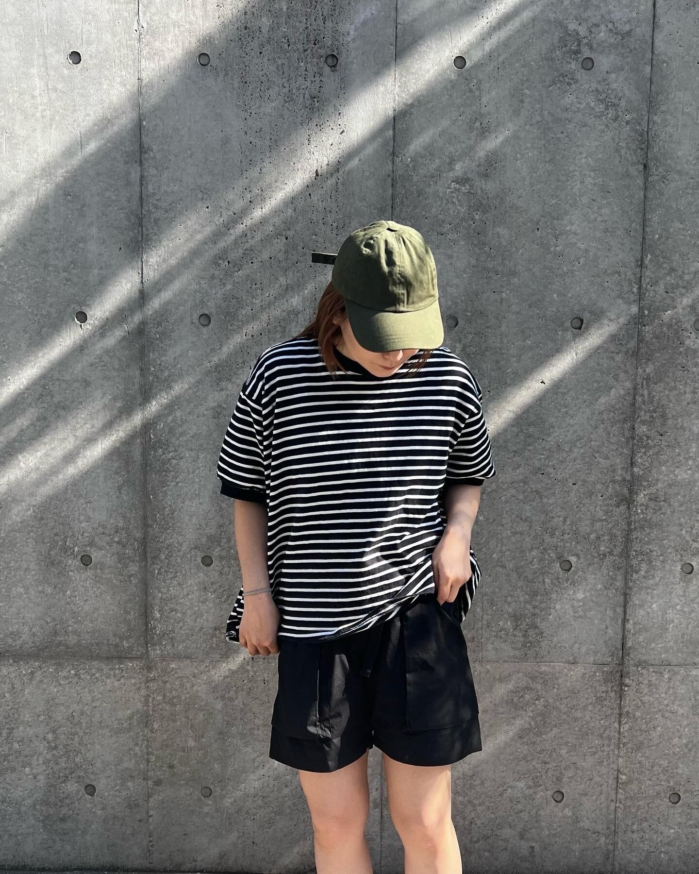 ビックシルエットのボーダーTシャツにアウトドアショートパンツを合わせました。