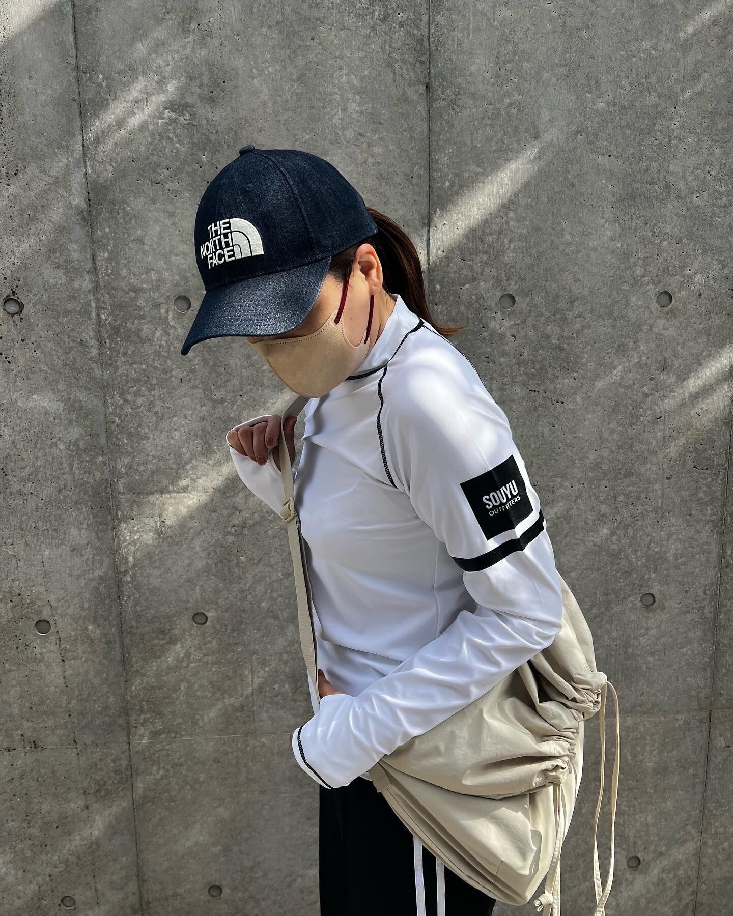 ジムバッグにはUNIQLOのドローストリングショルダーバッグが使えます。タオルやタンブラーも入りますしジム着との相性もよし!