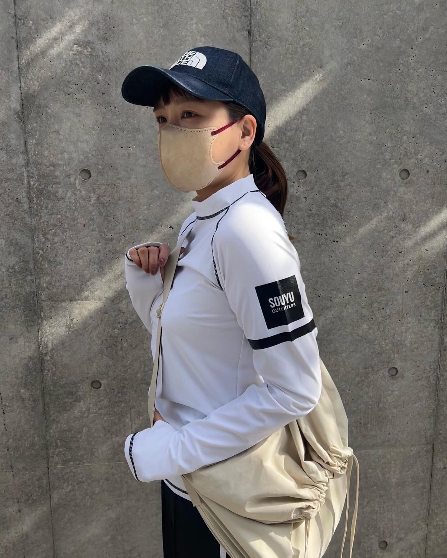 ラッシュガードにラインパンツを合わせてスポーティー全開なスタイリング。