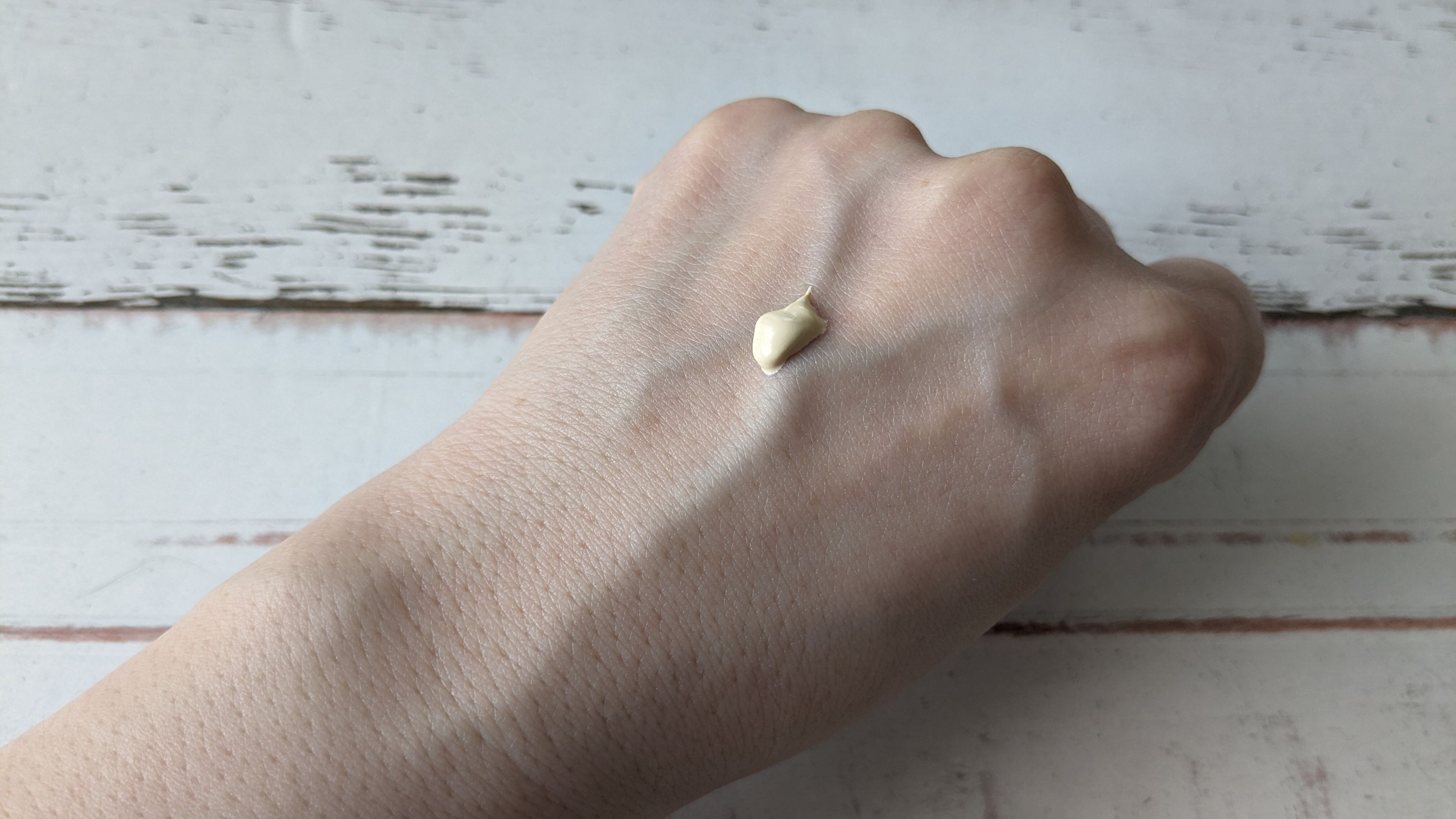【レモンカラー】はこの3種類で1番明るく、オレンジっぽさがないライトなイエローです。テクスチャーはスフレっぽさのある軽いクリームといった感じです。トーンアップ効果が高いです。
