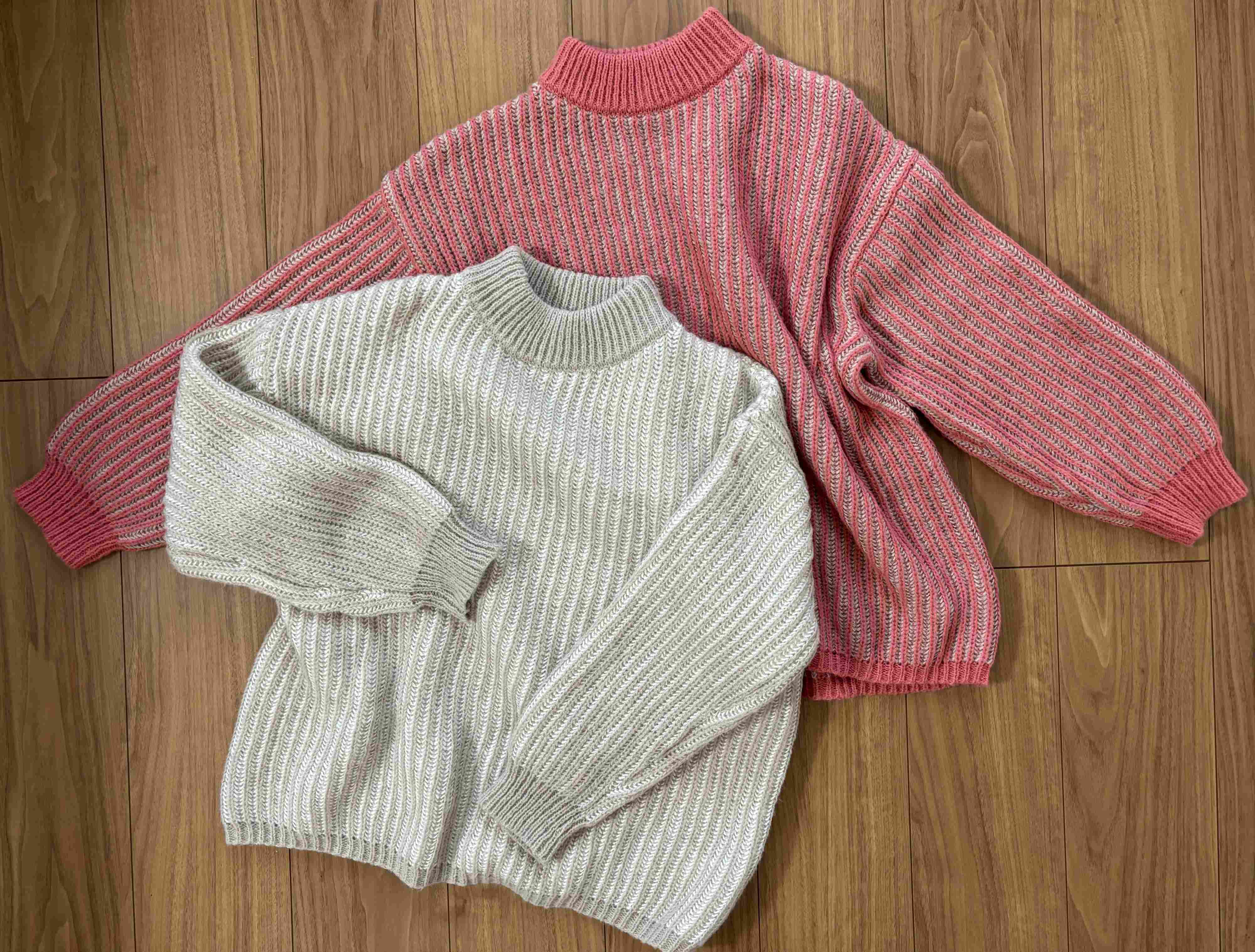 編み地がストライプ柄に見えるゆるっとしたシルエットのローゲージニットです。