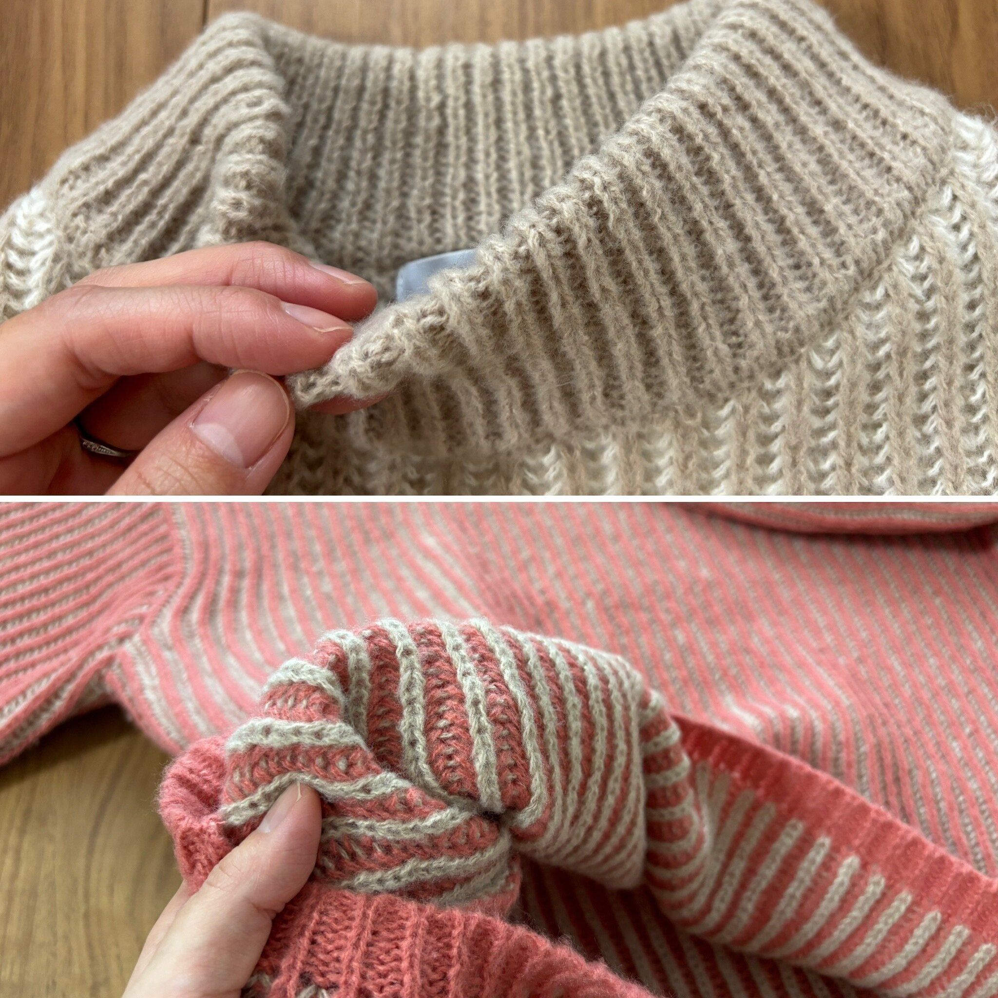 今回はチラシの大特価990円で販売されていた肉厚なストライプ柄ニットをご紹介します。