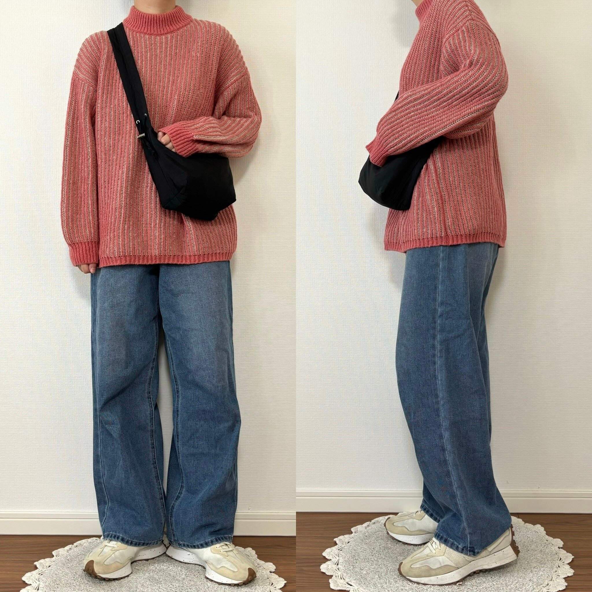 首元は若干ハイネックになっており、とても990円とは思えない厚みのあるニットなので防寒性にも優れています。