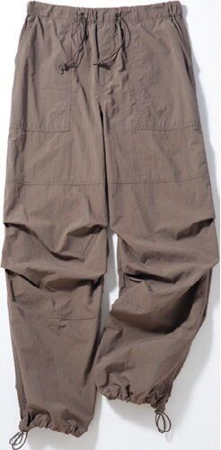 〈シャカシャカ素材のパラシュートパンツ〉トレンド素材で今年らしさを一気に盛る!シャカシャカ素材がスポーティーなパンツは、品よく見えるくすみカラーをセレクト。足首を絞ってはくと今年らしいシルエットに。