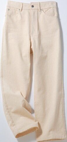 〈オフホワイトのデニム〉品がいいこなれカジュアルに欠かせない1本。デニムパンツはオフホワイトを選べば、キレイめコーデにも合わせやすい。体のラインを拾いにくい生地だから美脚効果も◎。