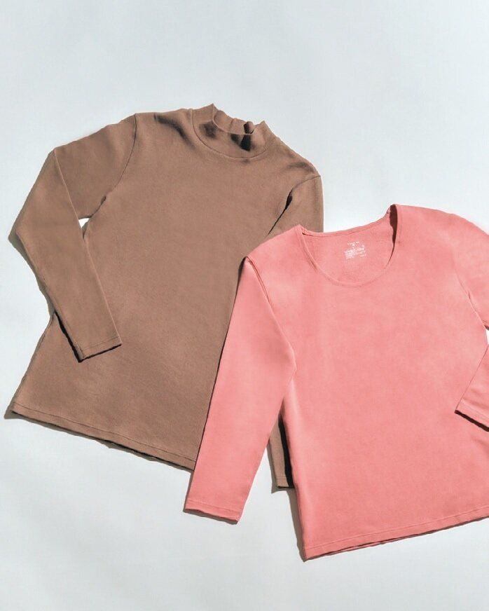 あったか綿ウールハイネック長袖Tシャツ ブラウン ¥2,990