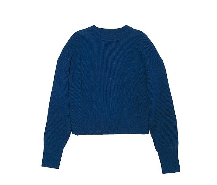 洗える畦編みショート丈クルーネックセーター ネイビー¥3,990