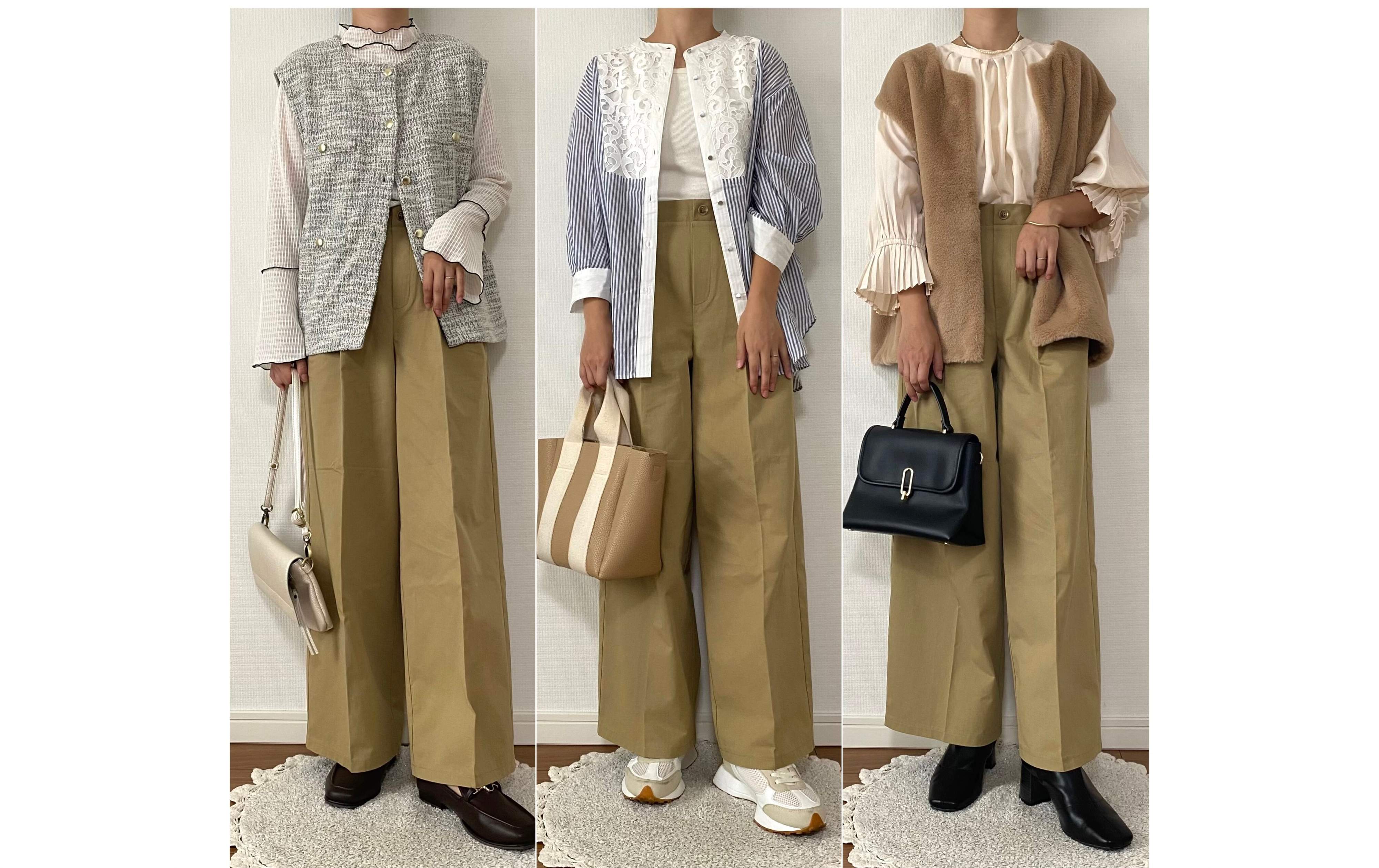 今回は秋の定番アイテム「チノパン」を使ったシーン別の全身しまむらコーデを3つご紹介します。