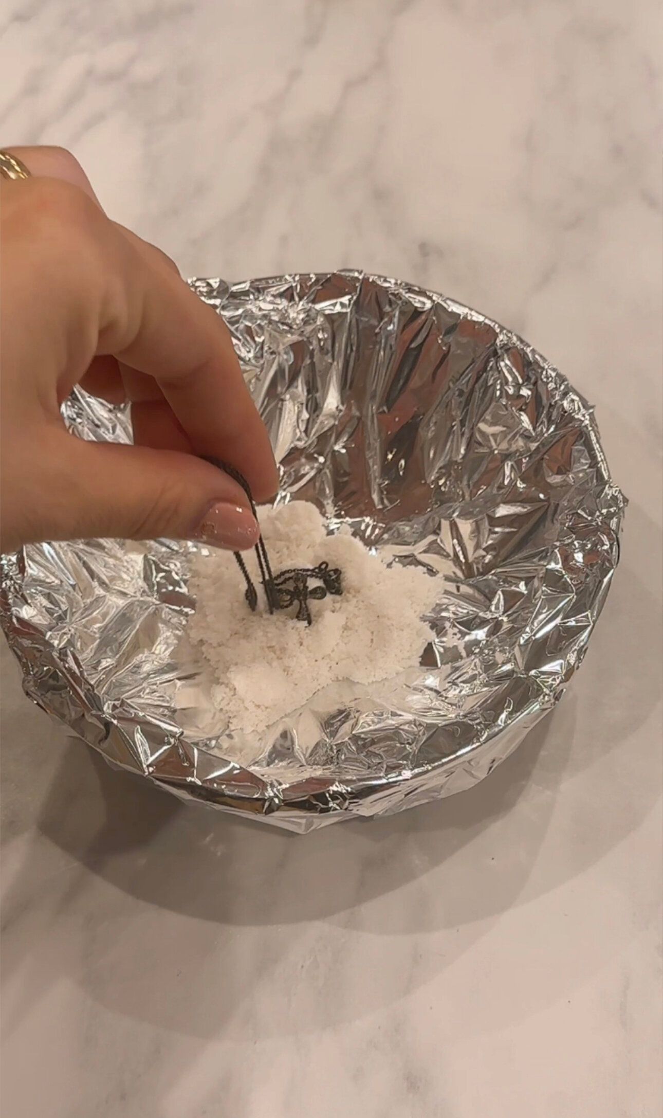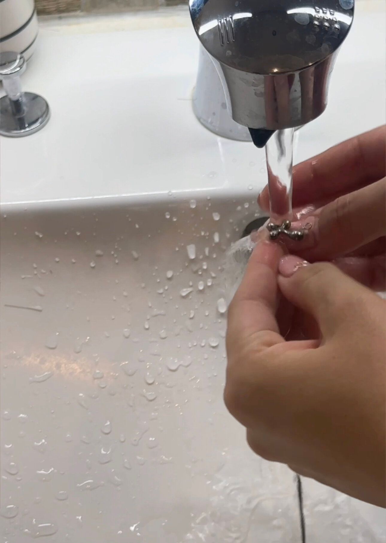 4:お湯が濁ってきたら、シルバーアクセサリーを水洗いしていく