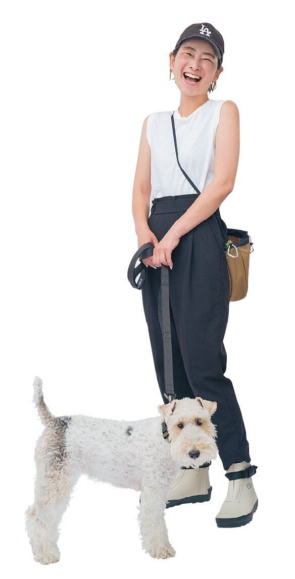 泥ハネが目立たない黒パンツで、犬の散歩中も水たまりにガンガン入る。学校に行く日も黒いパンツ。親の安定感を表現しているつもりです(笑)。