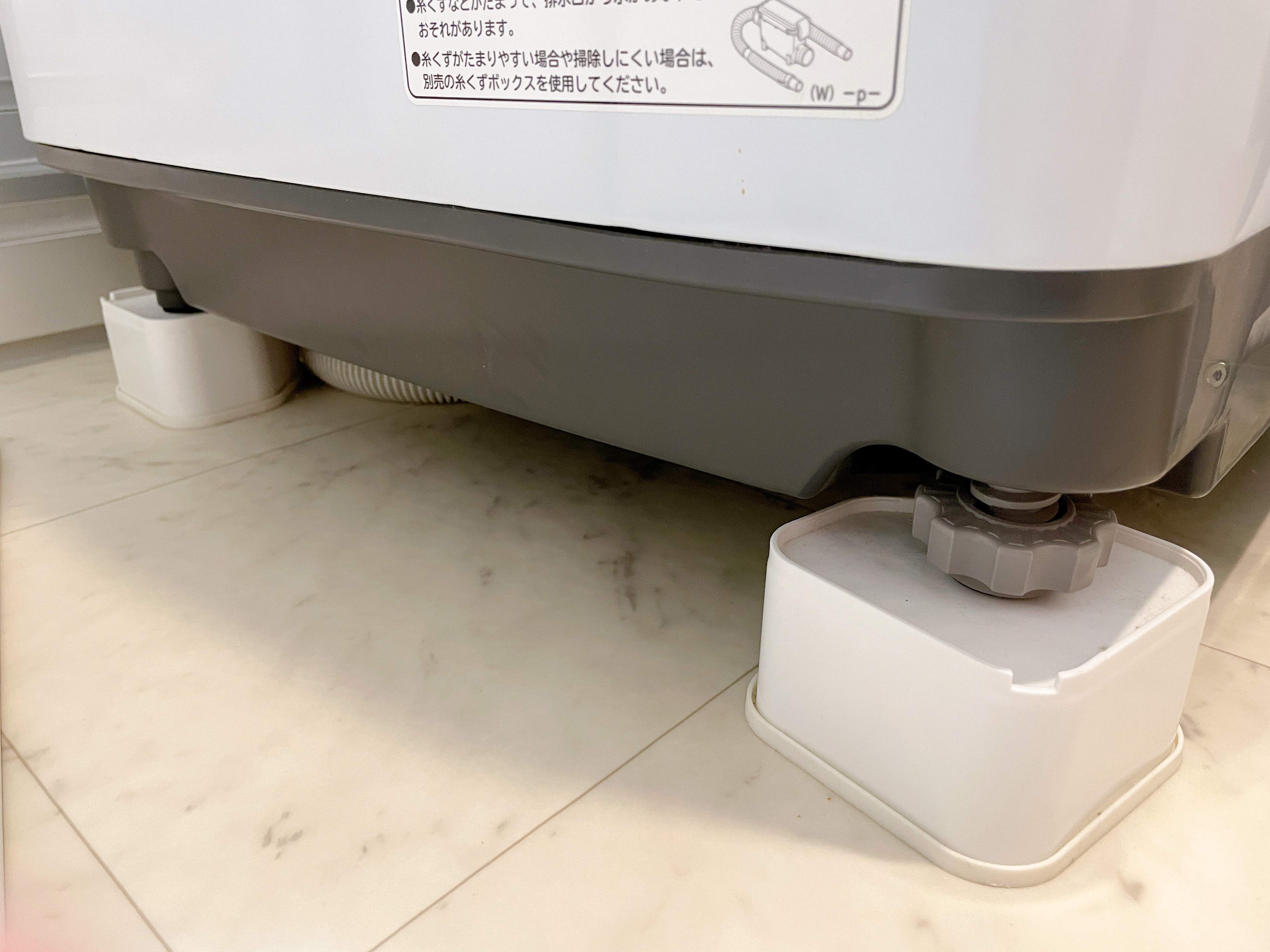 かさ上げをすれば掃除道具が洗濯機の下に入るので、掃除がしやすくなりました!