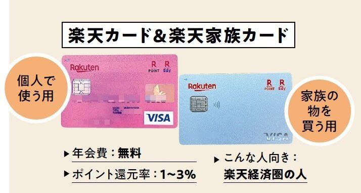 ポイントを集約するため楽天カードのみに。「ゴールドカードなどとポイント還元率にあまり差がないので、年会費無料の通常カードを選択」。