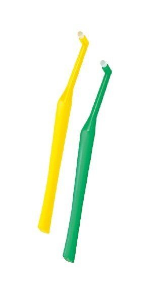 「歯の黄ばみの原因のひとつは、微生物の塊『プラーク』。歯の隙間のプラークを落とすには、ワンタフトブラシが便利です!」。