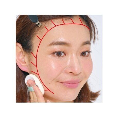 1 テカると膨張しがちなエラから汗ばみやすい生え際にパウダーを使って、テカリを防ぎます。