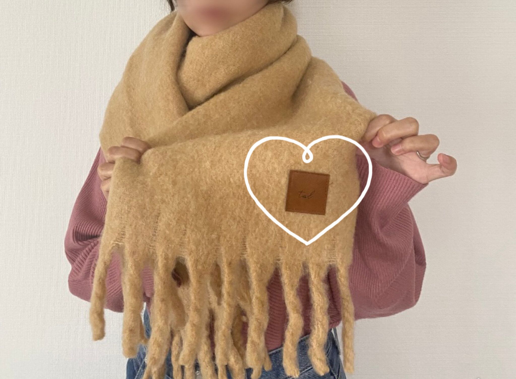 首に巻いてもボリュームがあってとても暖かく、これから訪れる本格的な冬の寒さにも対応できるマフラーだと感じました。