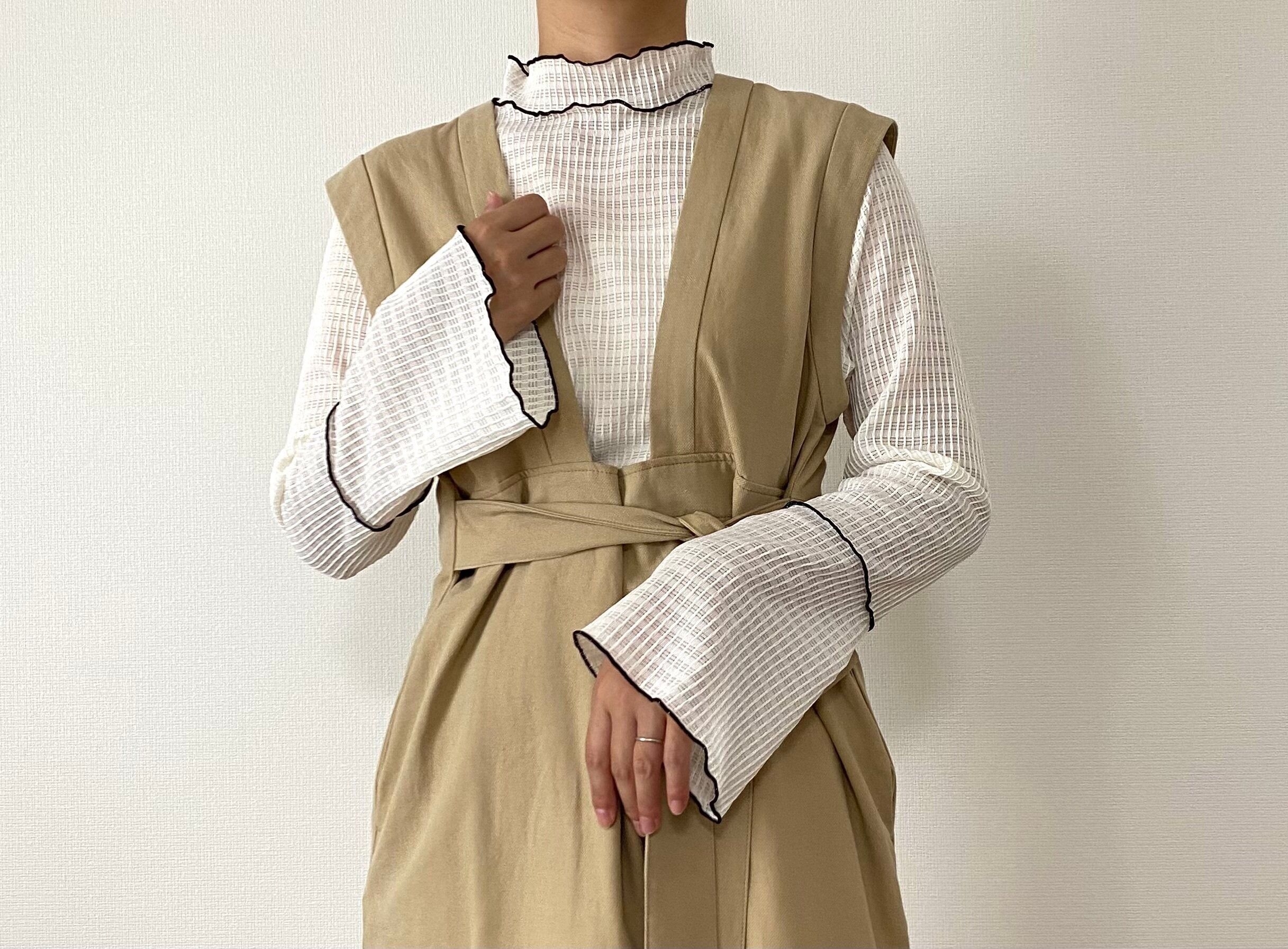 表面感のある生地でほどよい透け感があり、半袖では少し肌寒くなってくる時期にちょうどいい薄さです。