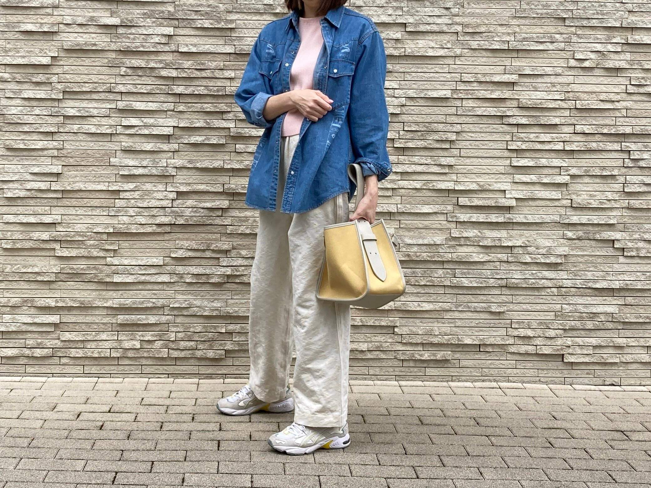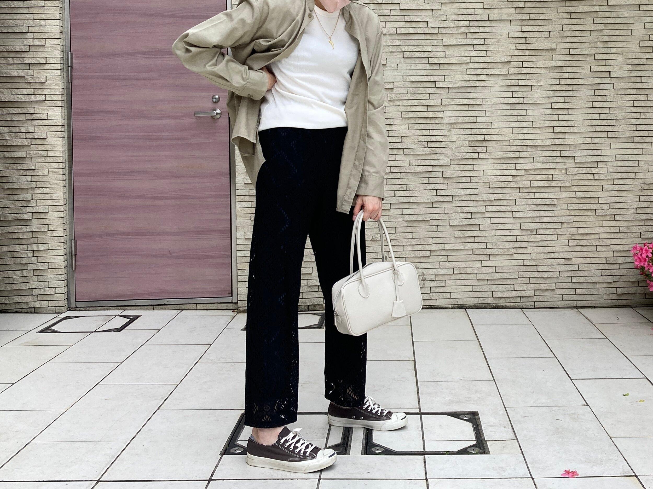 小雨の日は、ピンクやホワイトなど気分が明るくなるカラーを身につけてお出かけ。デニムシャツをサッと羽織ると甘すぎません。デニムシャツはくるっとロールアップさせると素敵。さらに品格をアップさせたいときは、首の後ろからグッとえりを抜くとデニムシャツが立体的に見えます。