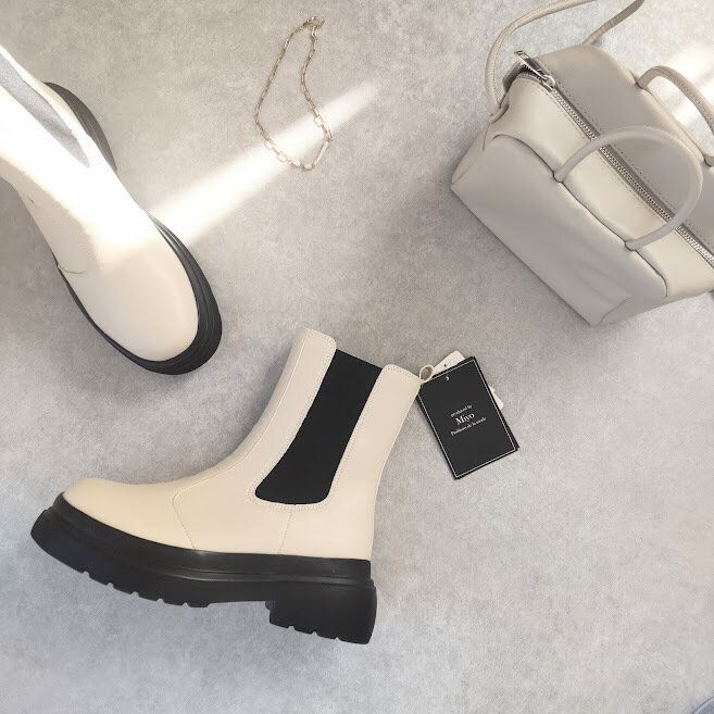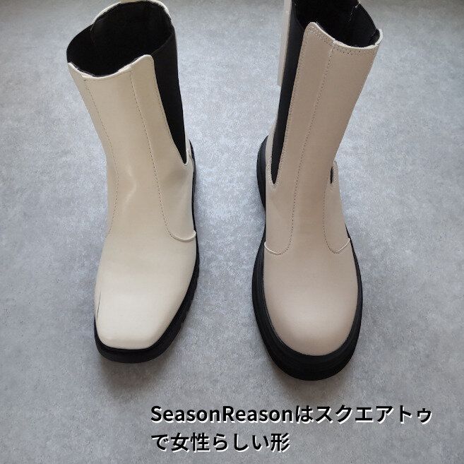 SEASONREASONのブーツは一般的なオフホワイトで、MIYOさんのブーツは淡いグレージュのようなカラーです。