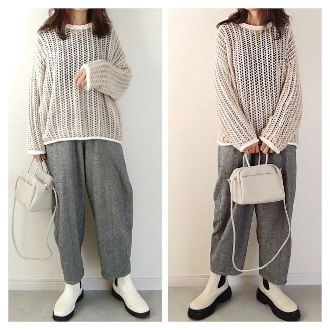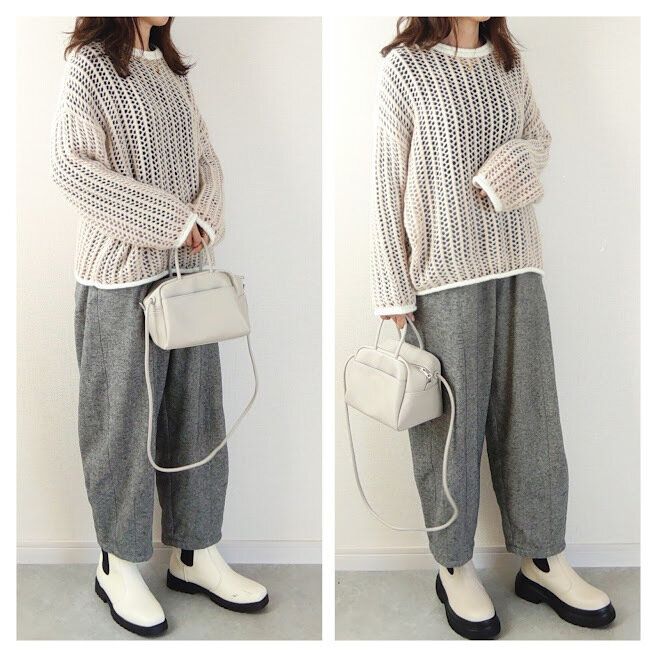 右のMIYOさんのブーツは足元がボリューミーでトレンド感アップ!