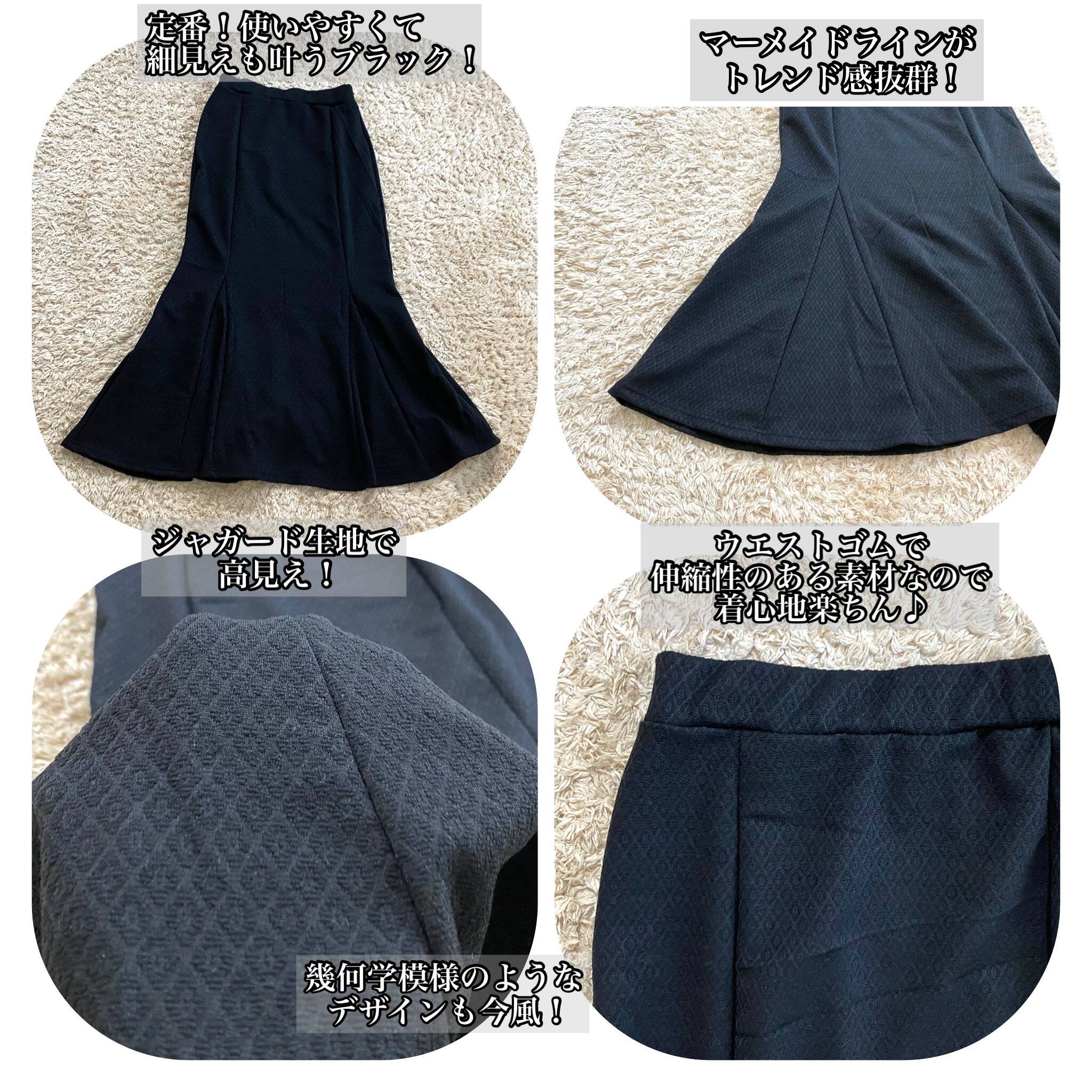 ブラックなら他のアイテムとも合わせやすいですし、私のような腰張り体型に不安がある方にも挑戦しやすいと思います!不安があれば今回のようにロング丈のトップスで腰回りを隠してしまうのも手ですよね。
