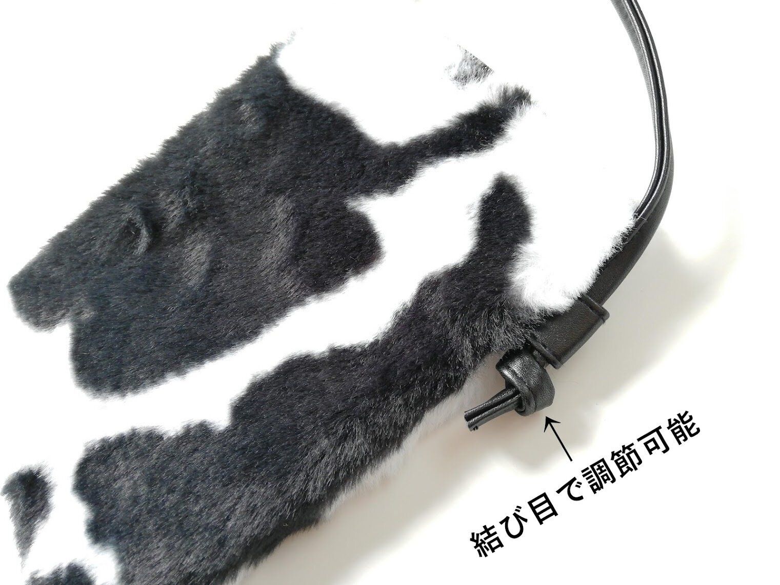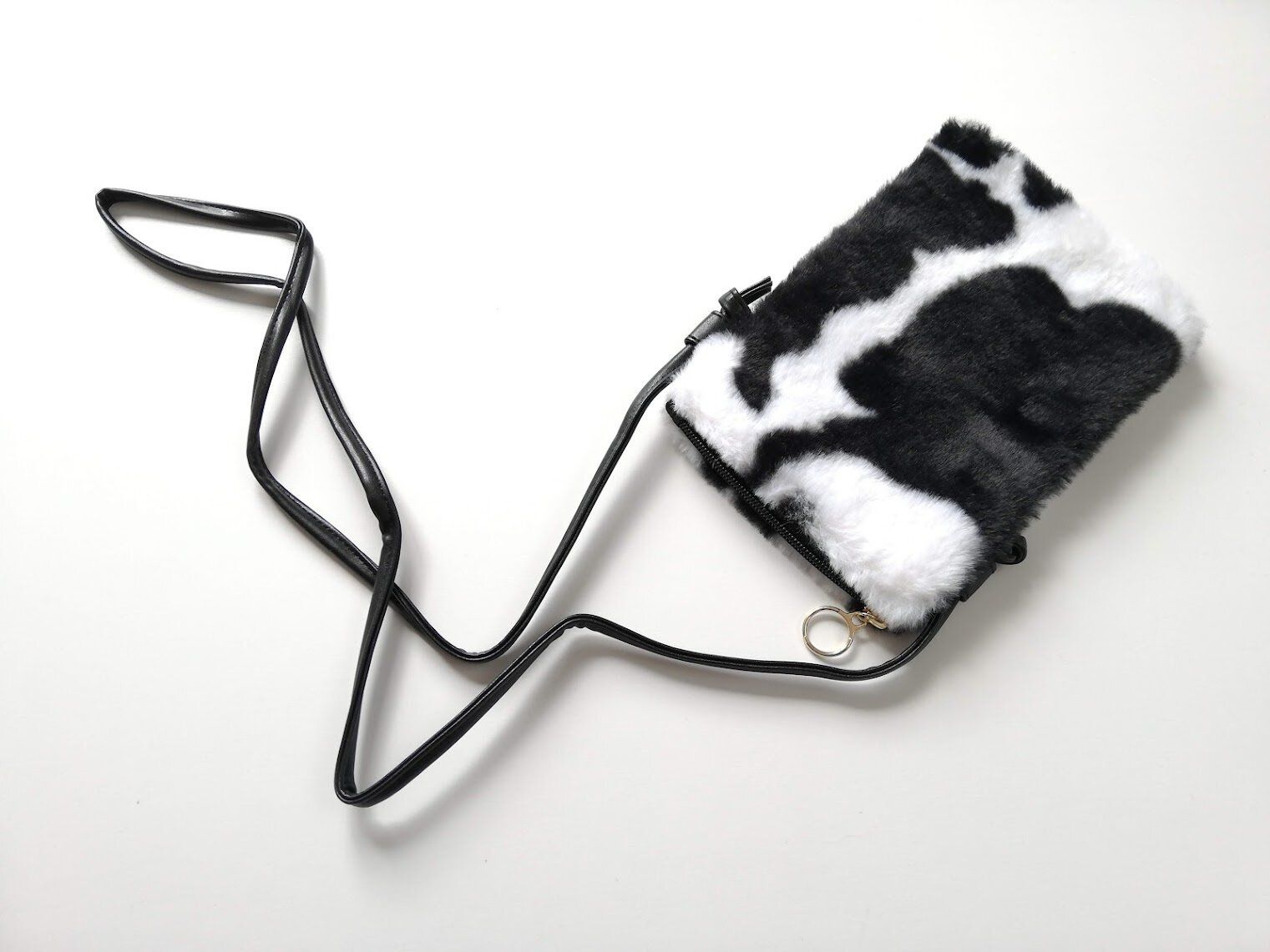 こちらの牛柄ポシェットなら、モノトーンがシックなので大人っぽい印象に。