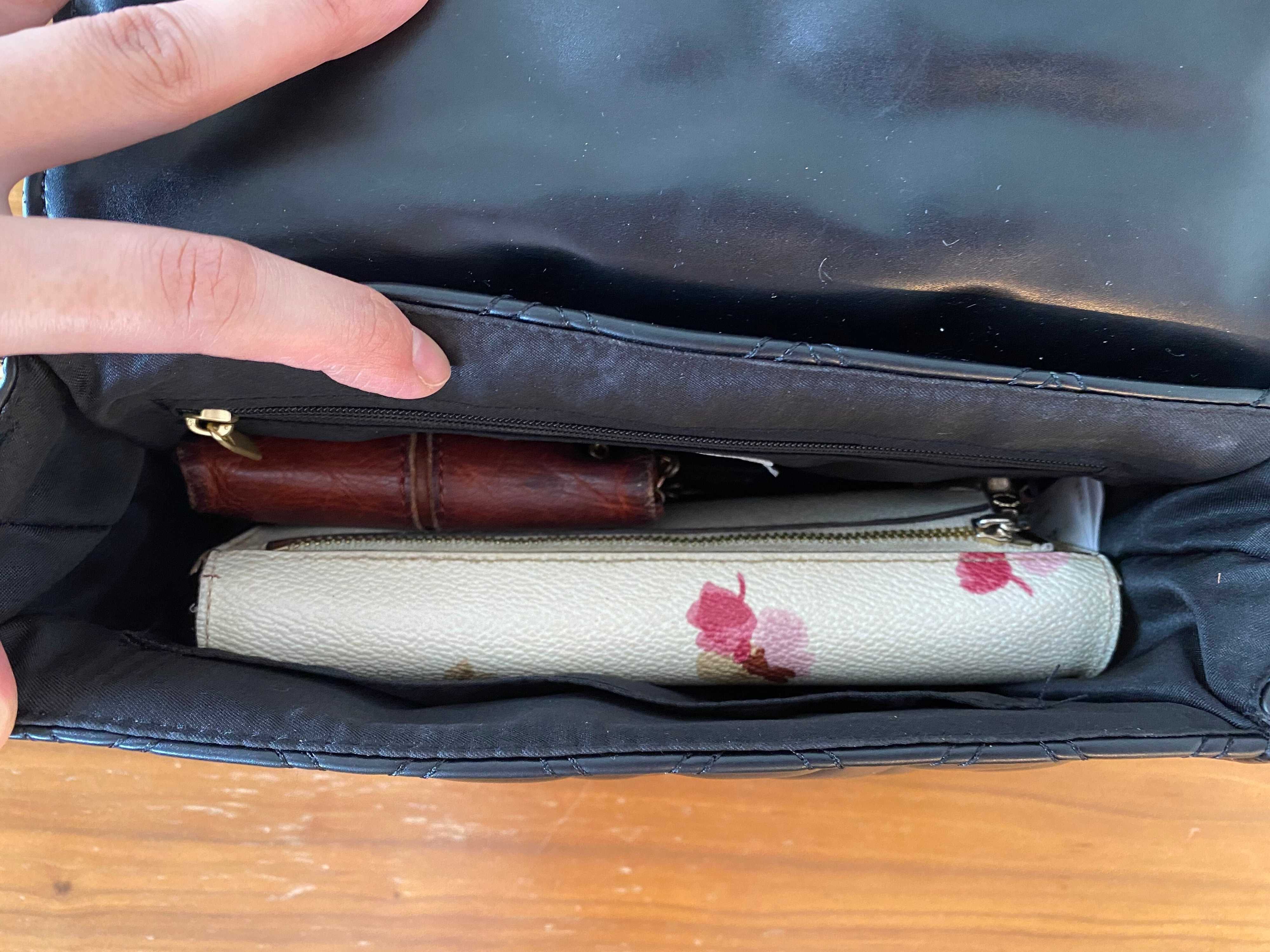 マグネットの開閉部を開けると中にはチャック付きポケットとオープンポケットが一つずつ。長財布もすっぽりと横に入り、小物ならまだ入りそうな余裕があります。