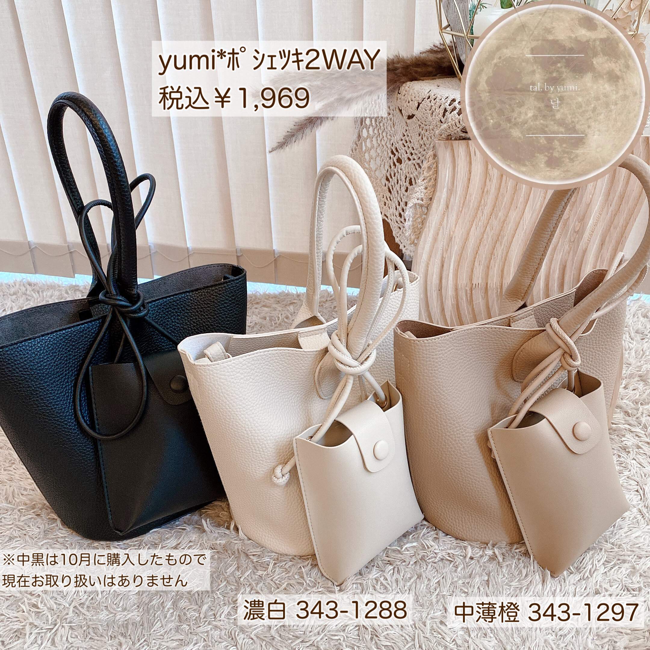 『淡色コーデ』で人気のインフルエンサー yumi.さんのディレクションブランド、『tal.by yumi』のポシェット付きバッグです。ワンハンドルでハイセンスなデザインなうえに、スマホポシェット付きで大変便利です。