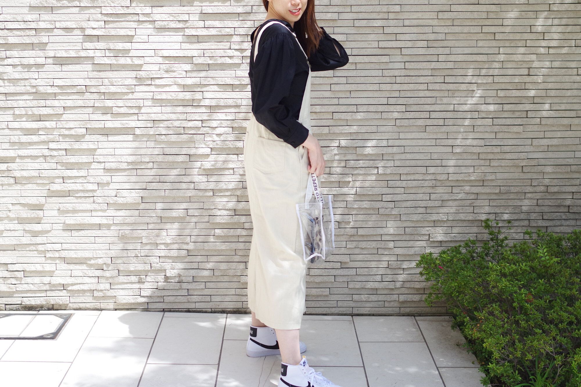 こんな風に、目新しいトレンドアイテムをコーディネートするときに、モノトーンコーデが役立ちます。