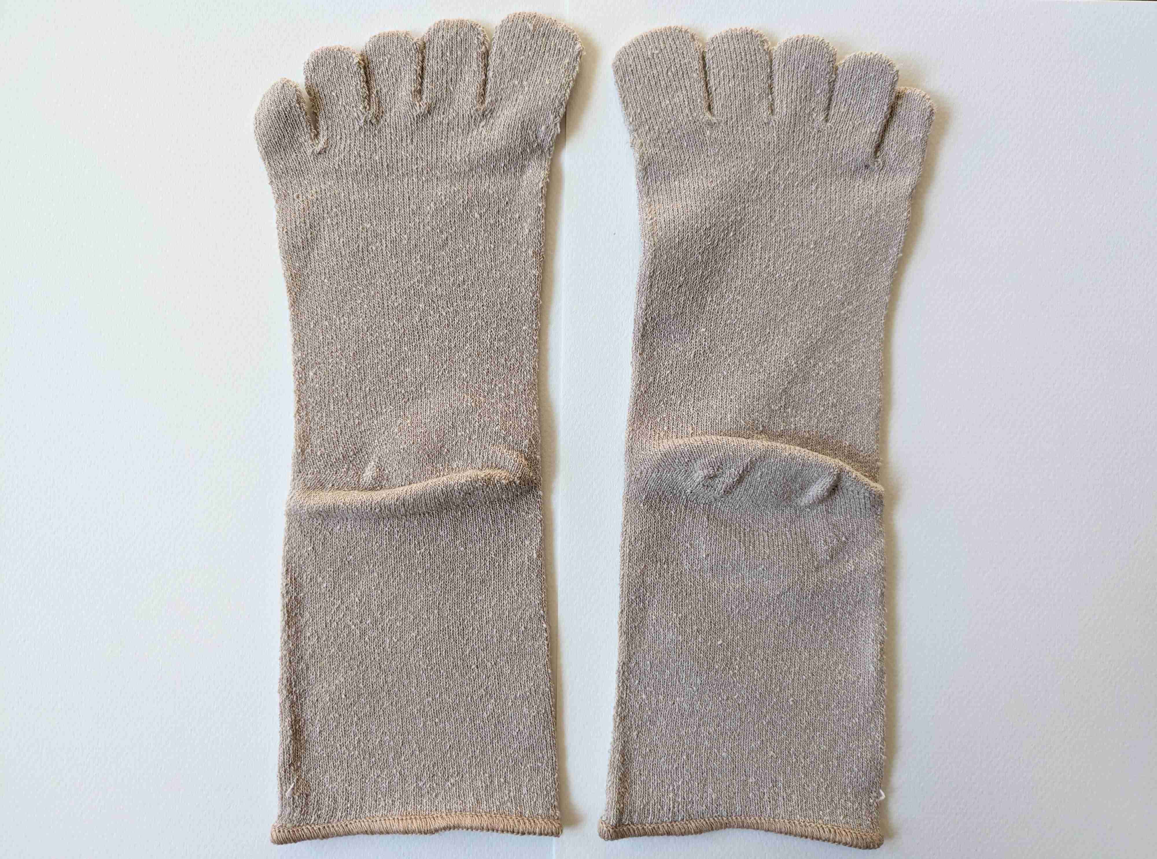 薄手でシルエットに響きにくいので、抵抗なく重ね履きできて、ずり落ちることもなくストレスフリー。足の指1本1本が布で覆われて、足先がしっかり温まる感覚です。たった1枚履くだけで温かさは段違い。
