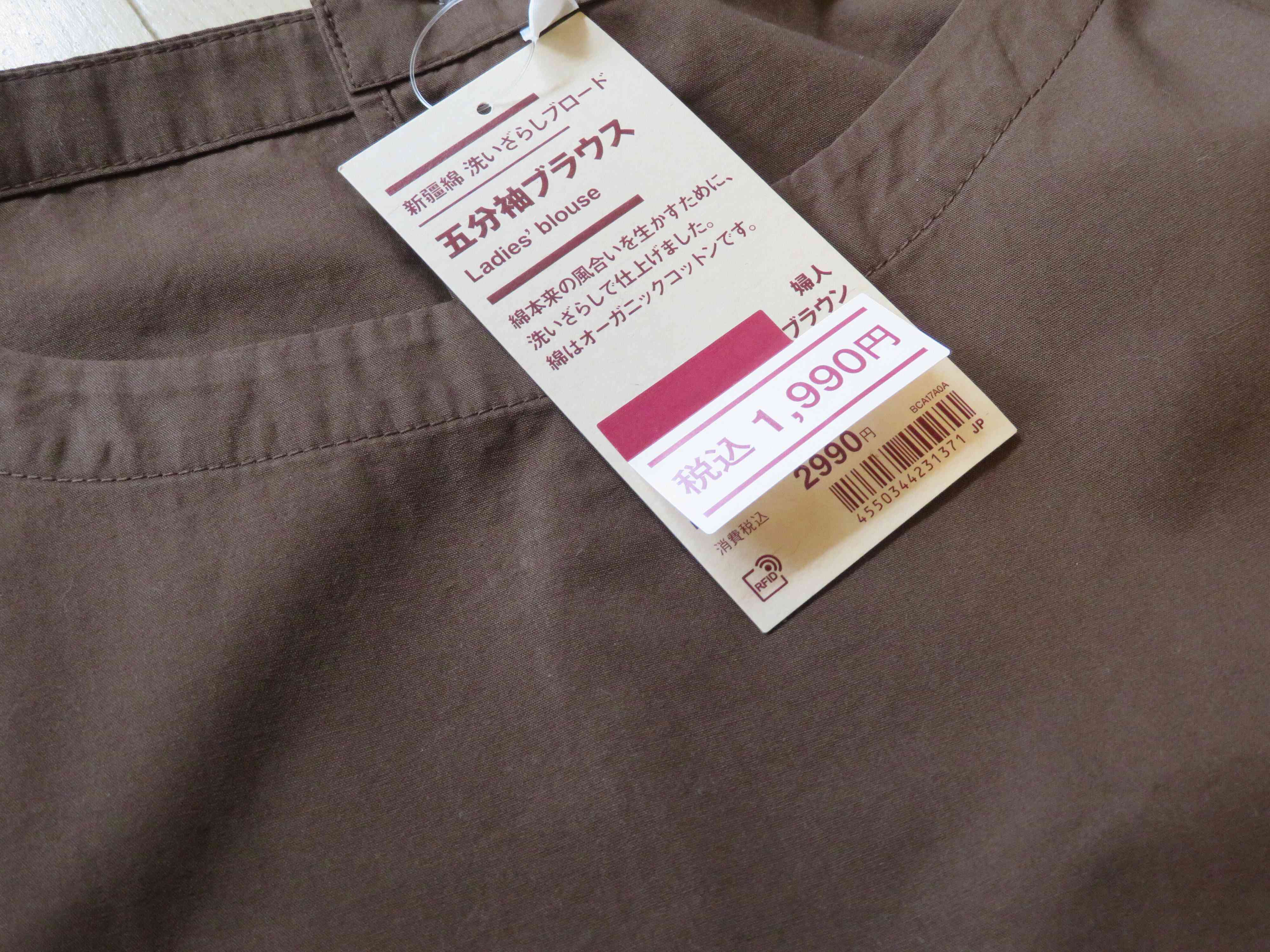 購入したのは、「新疆綿洗いざらしブロード五分袖ブラウス」税込1,990円です。