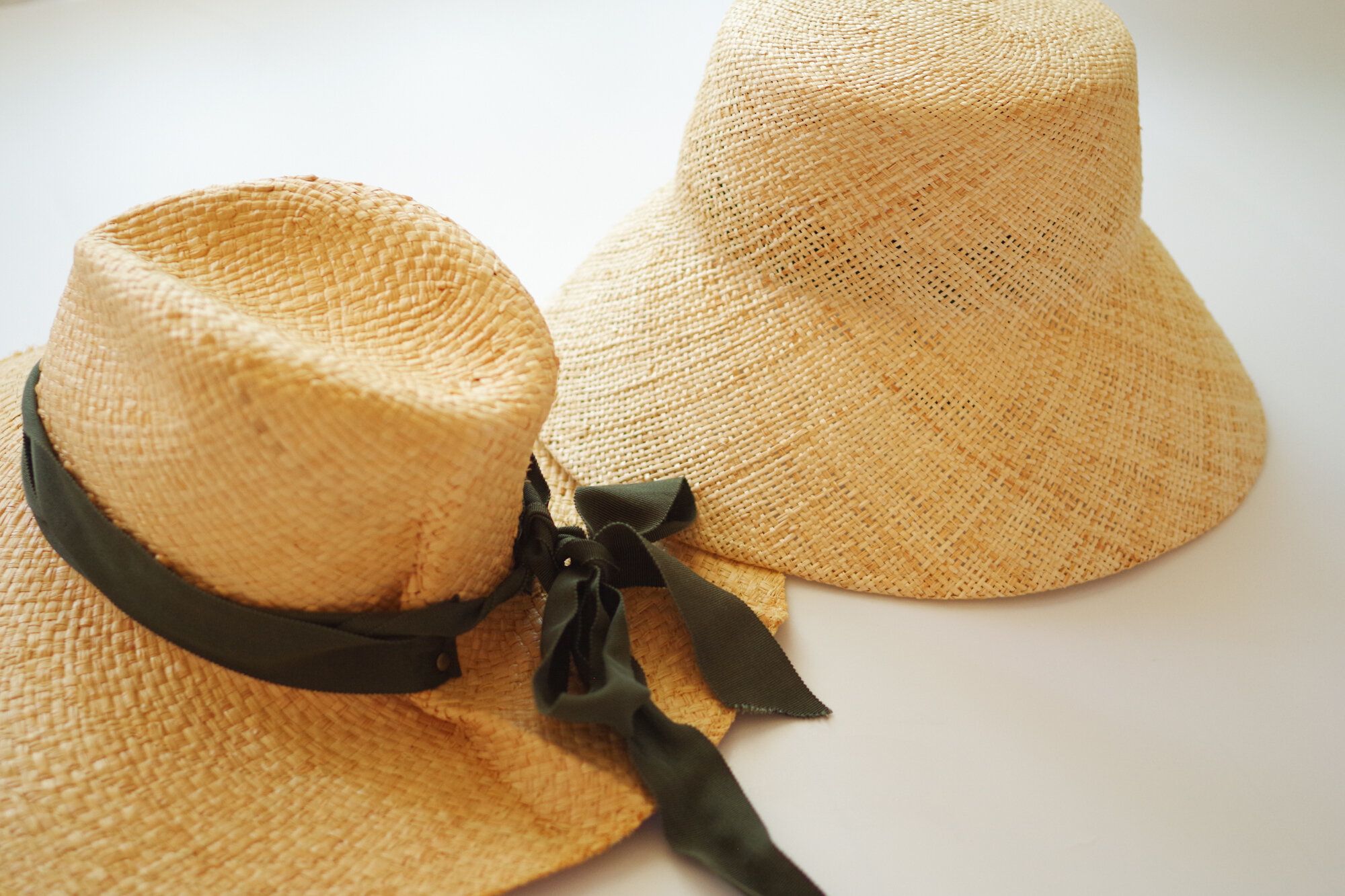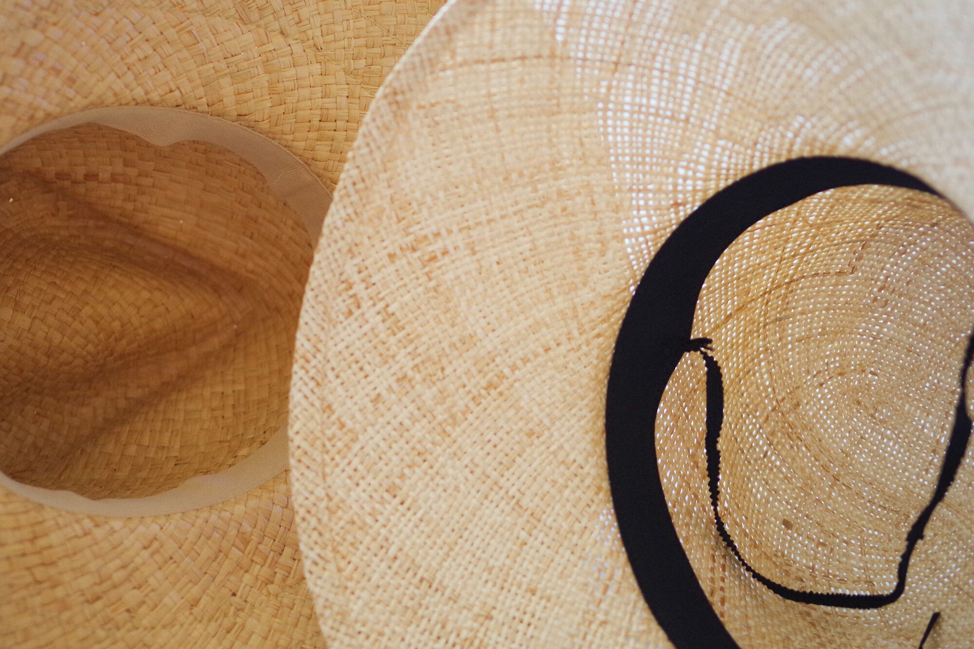 ここ2~3年は左側のリボン付きハットを愛用していたのですが、今年はハットのデザインに動きがあるように思います。ややツバが下に下がったデザインが気になったので、DHOLIC「バケットストローハット」をポチりました。