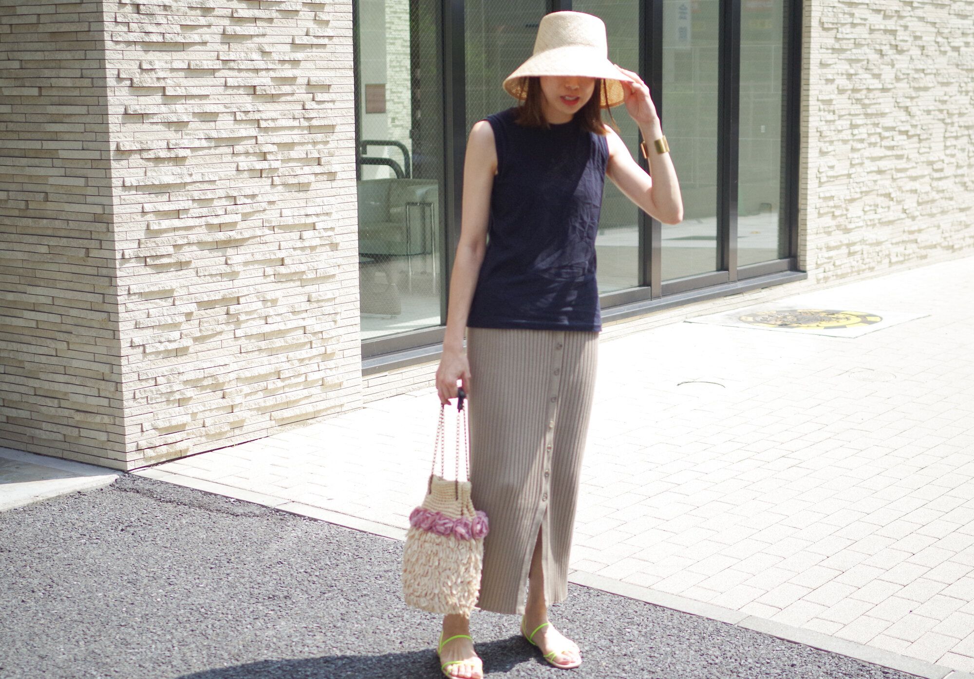 日差し除けに欠かせないし、季節感も出せる「ハット」。ですが、風に飛ばされてしまいそうになり、片手が頭から離せない…なんて経験ありませんか?この夏、DHOLICで購入したハットにゴム紐をつけてみたら快適!だったのです。