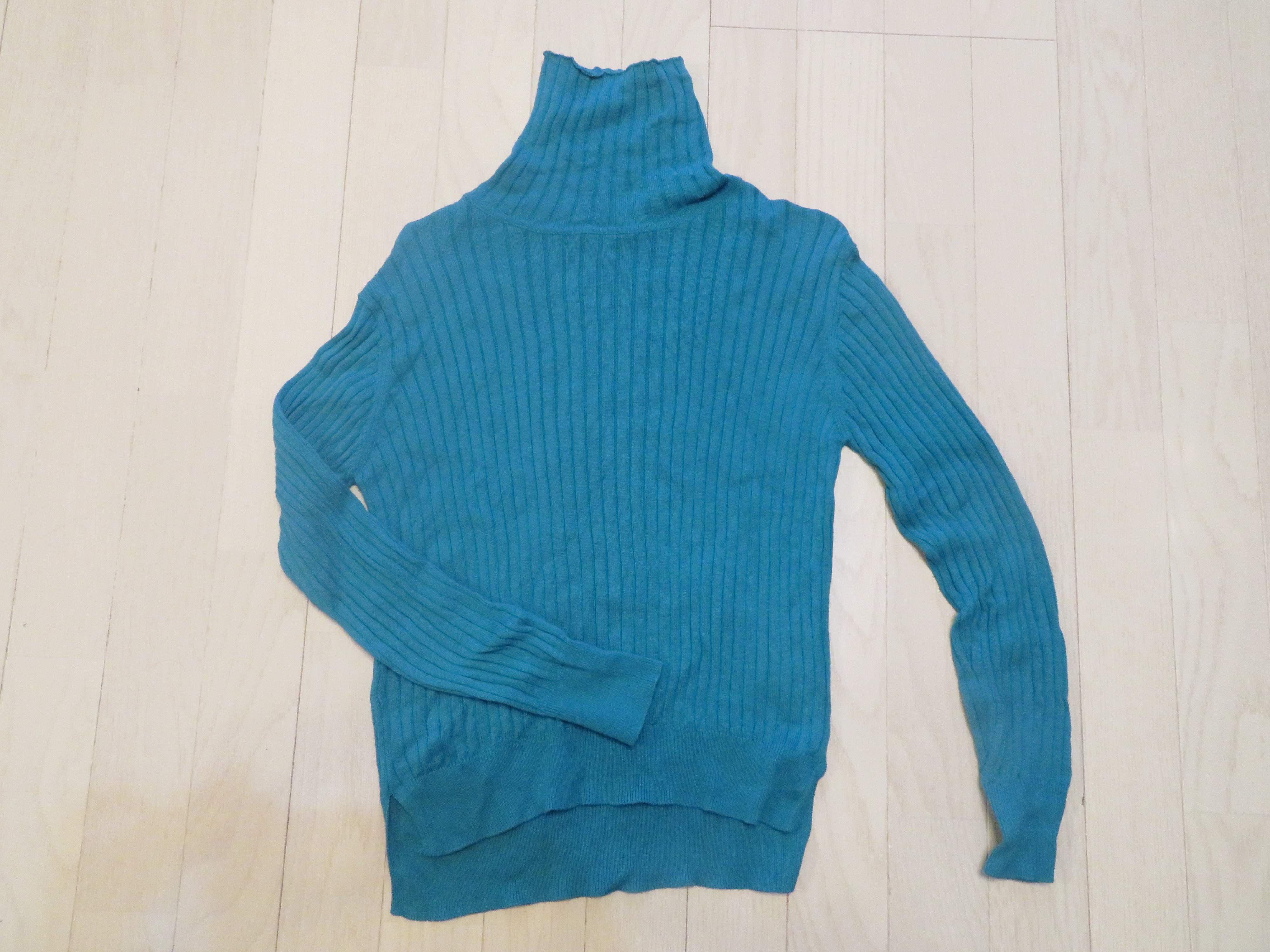 今回買ったこのグリーンのニットも、青みのあるターコイズグリーン。