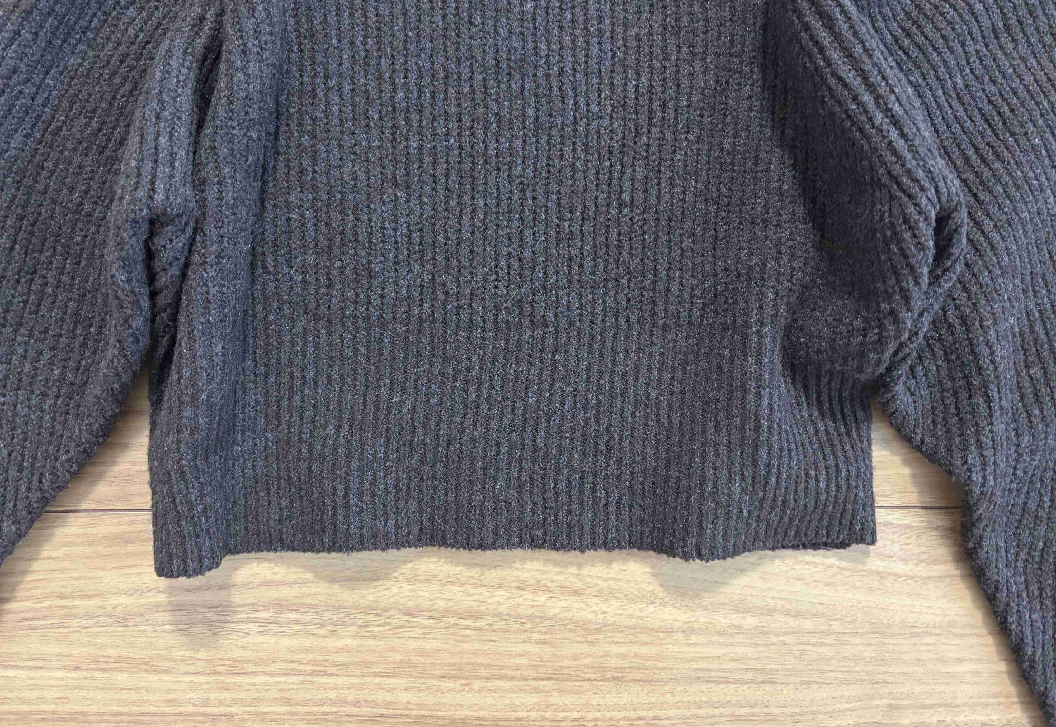 今回は1,969円のボリュームスリーブニットをご紹介します。クルーネックにリブのシンプルなデザインでありながら、バナナのように膨らんだ個性的なボリュームスリーブと短い丈のシルエットが女性らしい魅力を引き立ててくれるニットです。