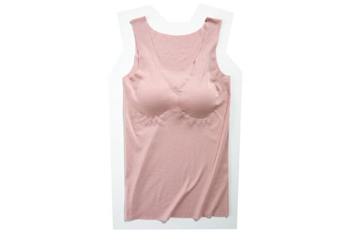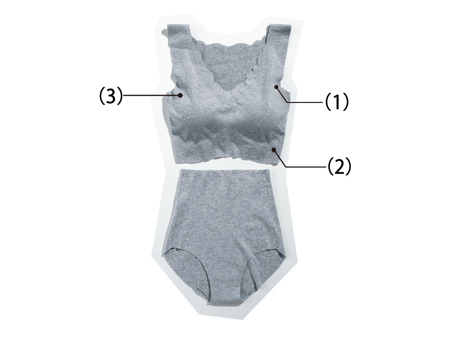 縫い糸を一切使わない接着仕様。肌ストレスとなるチクチクや、かゆみ等が軽減。パッド入れ部分も縫い目なし