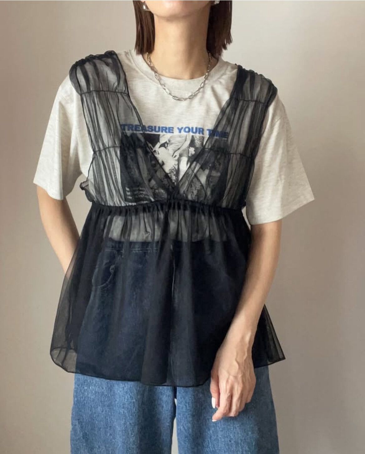 夏の定番スタイルといえばTシャツ×デニムパンツ。シンプルなコーディネートにトレンド感をプラスしたいときに「チュールビスチェ」は大活躍!「チュールビスチェ」を着用することでカジュアルな中にもレディライクな印象をプラスすることができます。