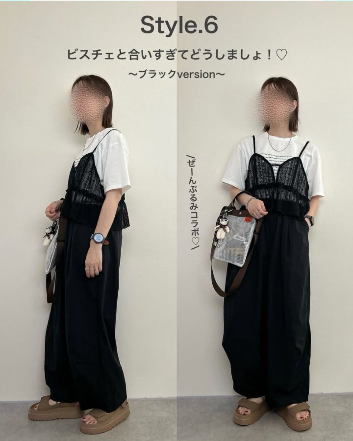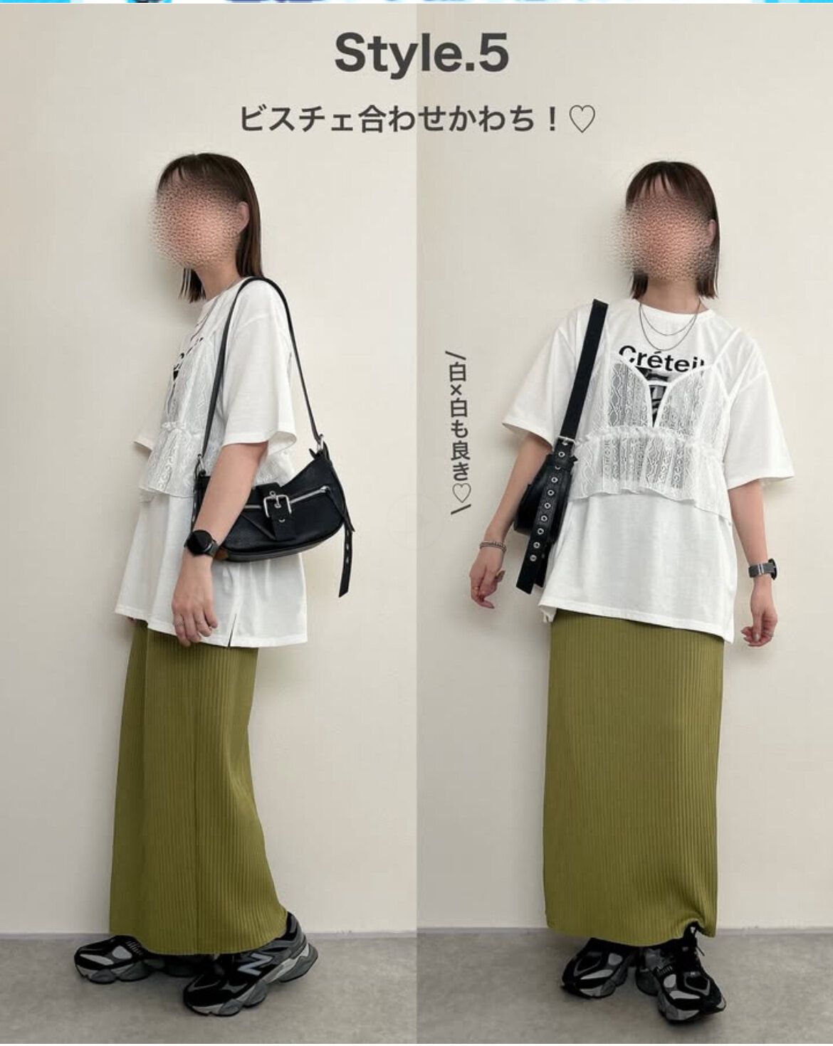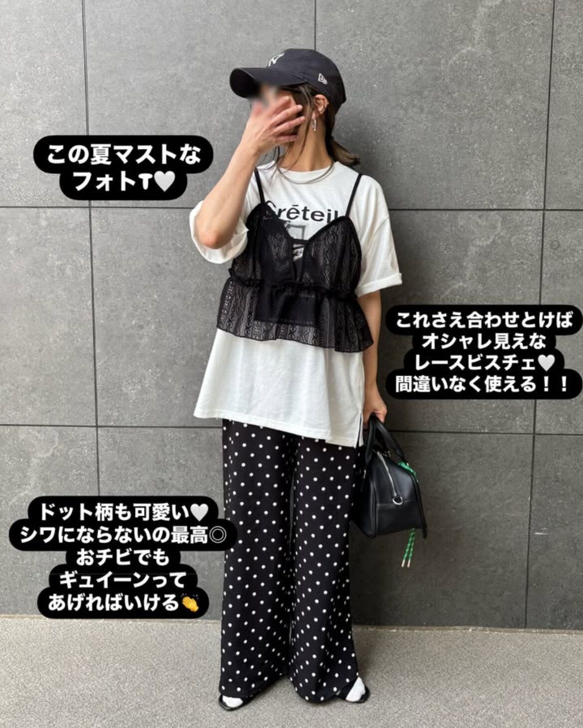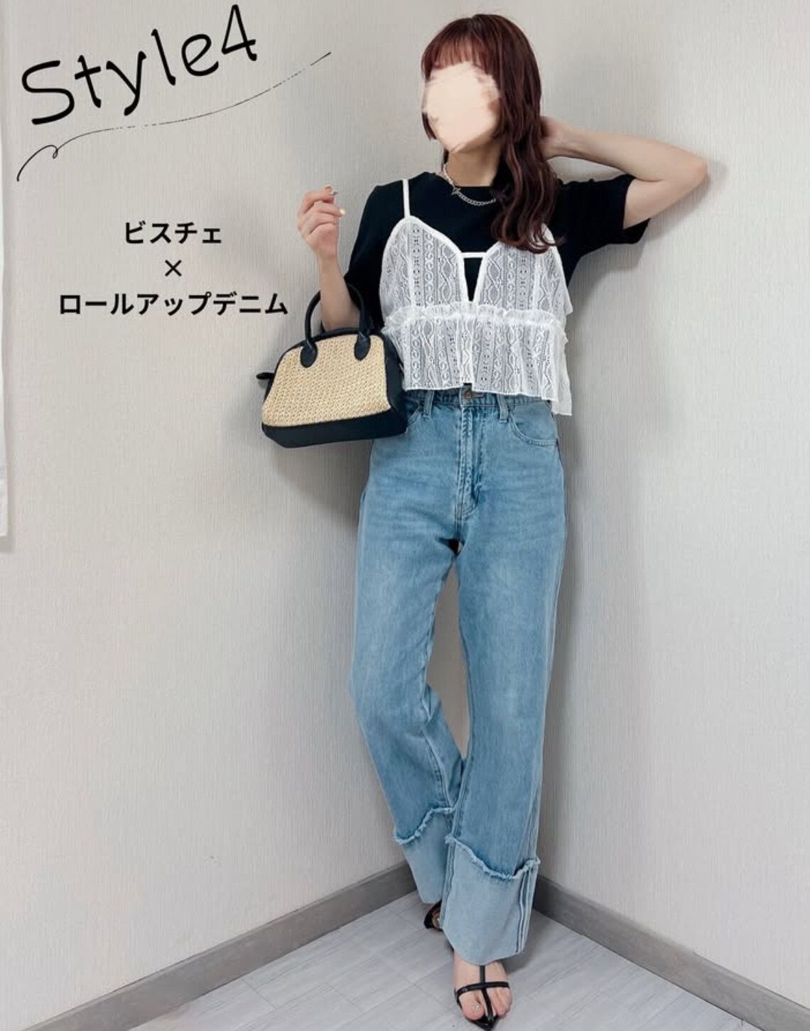 レースビスチェ初心者の人はモノトーンコーディネートを組めば失敗なし!甘くなりすぎるのを避けたい場合はコーディネートのカラーは黒の割合を多めにすればOK。