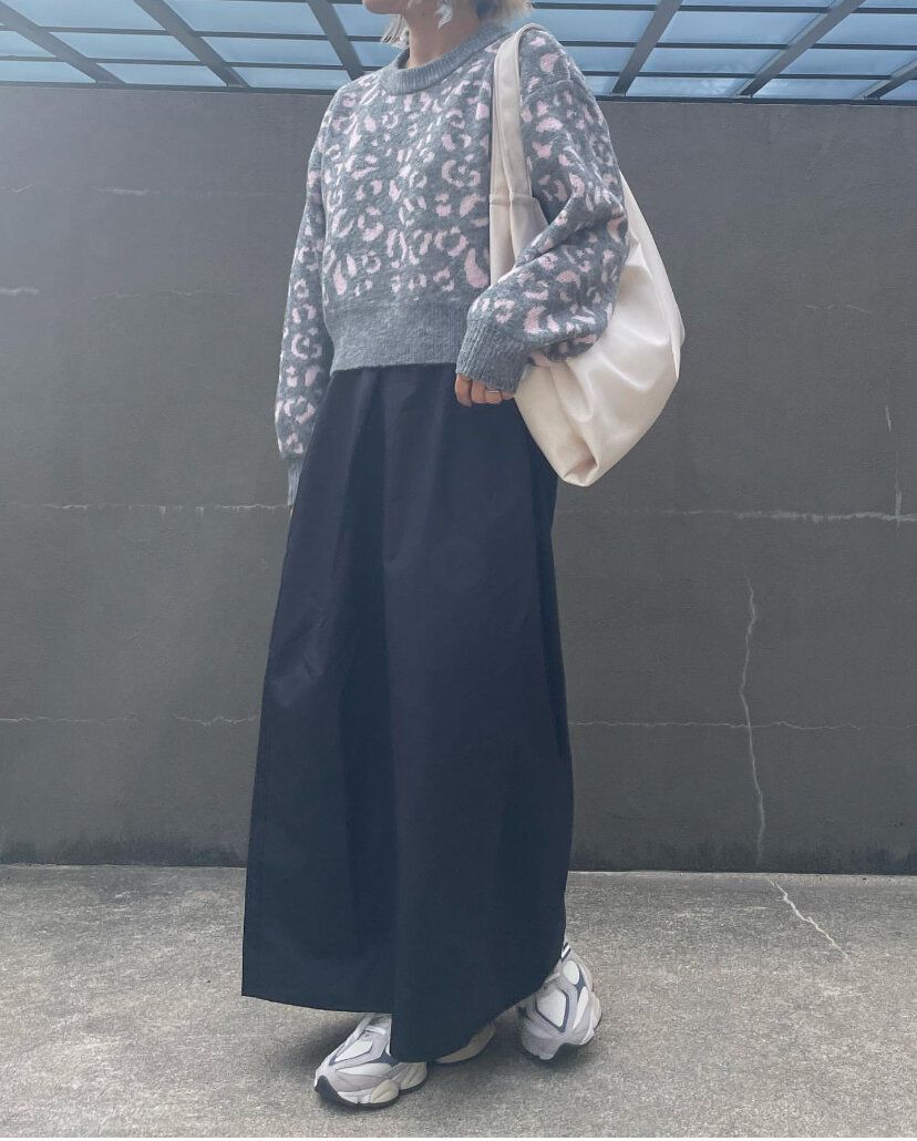 トレンドのレオパード柄のニットもしまむらならプチプライスでGETできちゃう!「レオパードニットプルオーバー」(1,969円)は、丈感が少し短めなので、ロングスカートやルーズなシルエットのボトムスと相性抜群。メリハリのあるシルエットのコーディネートは、スタイルアップして見えるので着やせしたい人や低身長の人にもピッタリ。グレー×ピンクの配色のデザインはレオパード柄初心者の人でも使いやすいしおしゃれさんになれちゃう!