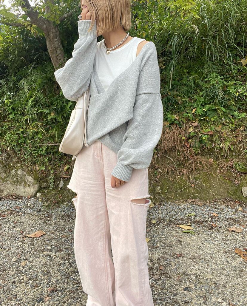 「TT*ニットPO+タンク」(2,420円)は、ニットとタンクトップがセットなのに2,500円以下で買えちゃう!組み合わせ方がわからない……という人も、タンクトップとセットになっているのでコーディネートに悩みません。 程よい抜け感が華奢な印象を与えてくれるので、着やせ効果も期待できちゃう♪デザイン性の高いクロスニットもしまむらならチャレンジしやすいですよね。