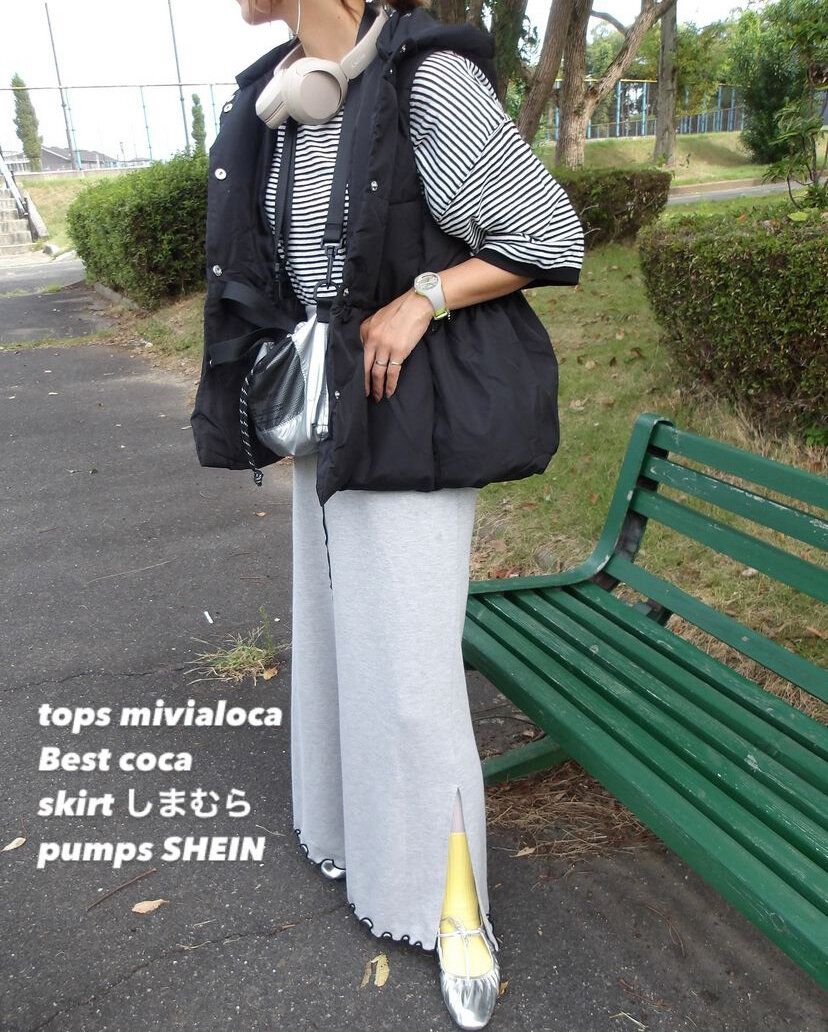 ボーイズライクな印象になりがちなブラックの中綿ベストもペプラムデザインならかわいらしさも演出してくれます。着回し力を重視するならブラックがおすすめ。カジュアルなファッションの幅を広げたい人は重宝する事間違いなし!