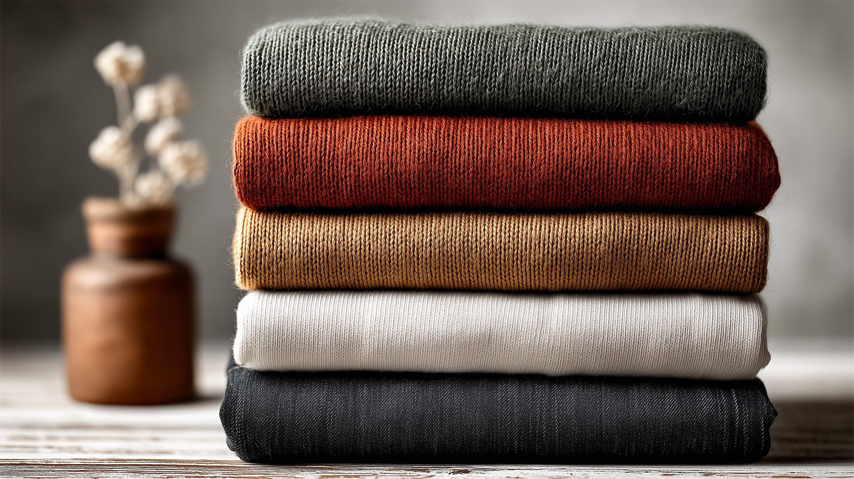 秋は、季節がら保温性に優れたウールなど、素材だけでボリュームが出やすくなります。たとえば、同じボーダーでも、綿とウールでは着太りするのは断然ウールとなるため、選び方にはコツが必要です。