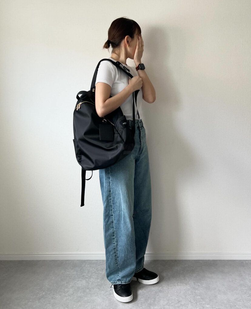 今までにないシルエットの「バレルレッグジーンズ」は、シンプルな定番アイテムも今年っぽい印象を与えてくれる優秀アイテム。クローゼットに1枚はある白Tシャツも「バレルレッグジーンズ」をあわせるだけであか抜けた印象を与えてくれます。手持ちの服はあまり増やしたくないけれど、おしゃれも楽しみたい!そんな人にピッタリ。