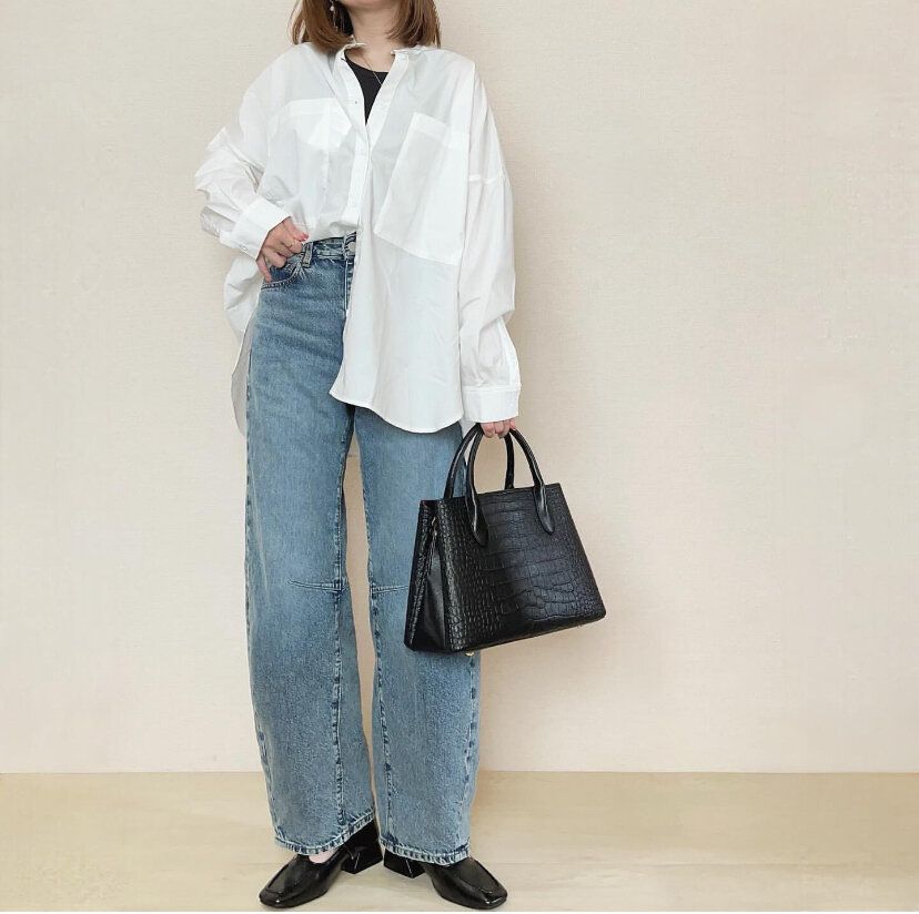 ラフな印象が強いジーンズですが、きれいめカジュアルファッションとも相性抜群!白シャツをあわせれば、きっちり感と抜け感が絶妙な塩梅のスタイリッシュな印象に仕上がります。
